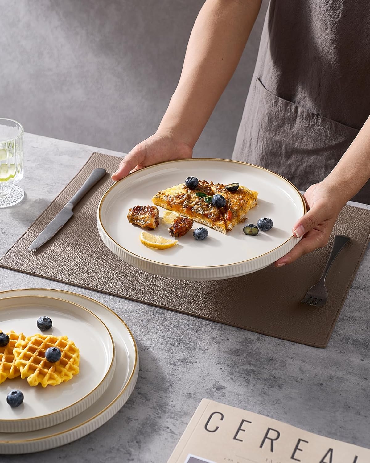 - Stackable: Appreciating the vertical-edge design, we've also addressed the stacking dilemma. Our dinnerware features grooves on the underside for easy, stable stacking