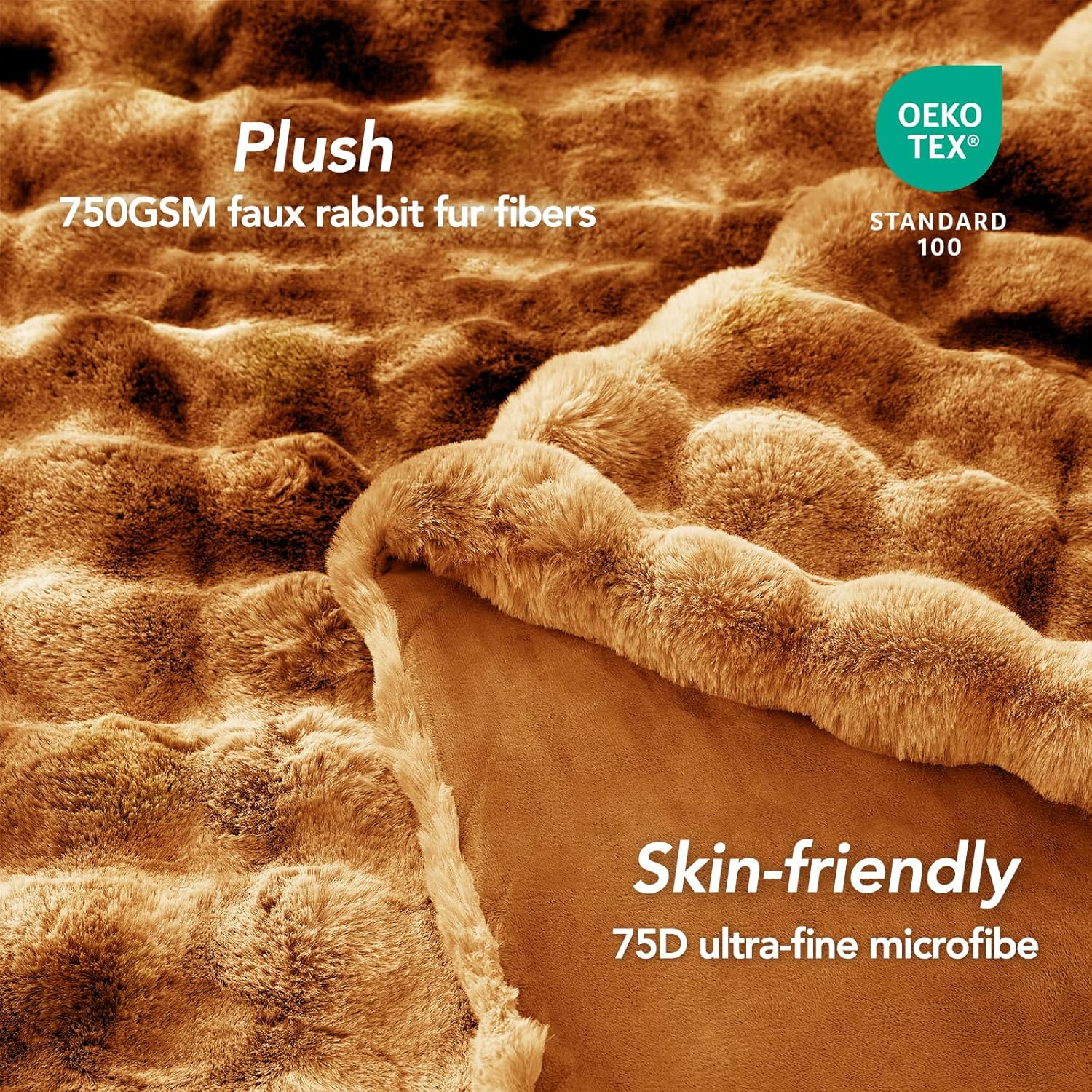 - Ultra Soft & Furry: Our Rabbit Fur Thick Blanket is soft to the touch and perfect for snuggling up on the couch or bed in cold weather, making you feel like you're on a cloud. The bubble faux rabbit fur blanket is made of 650GSM premium microfiber polyester, which is extra soft, fuzzy, and fluffy, making it the perfect companion to keep you warm during the fall and winter months