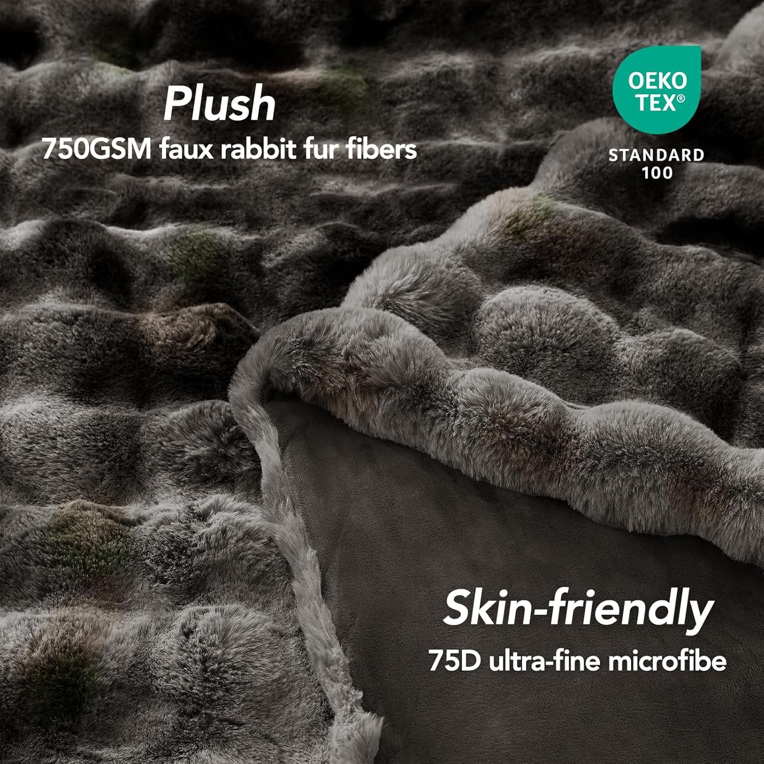 - Ultra Soft & Furry: Our Rabbit Fur Thick Blanket is soft to the touch and perfect for snuggling up on the couch or bed in cold weather, making you feel like you're on a cloud. The bubble faux rabbit fur blanket is made of 650GSM premium microfiber polyester, which is extra soft, fuzzy, and fluffy, making it the perfect companion to keep you warm during the fall and winter months