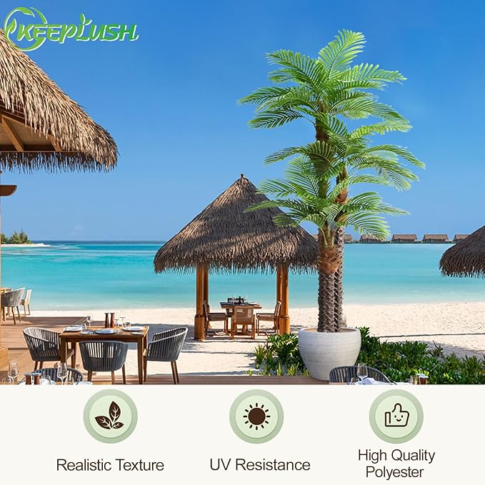 - This lifelike large artificial palm tree will create a sunny beach summer atmosphere wherever you place it, providing your coastal decor with an authentic look, no need for watering and pruning, looks full and fresh every day, it is the perfect decoration for indoor & outside, big house, office, outsides patio, farmhouse, porch, balcony, entrance, fireplace, doorway, stairway, green garden, yard, dining room, living room, bedroom, modern aesthetic decor, etc