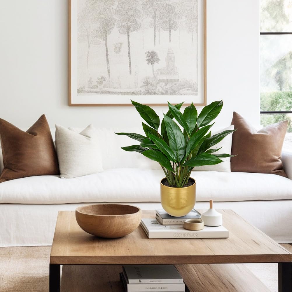 Fake Plants 17'' Faux Plants Artificial Potted Plants Indoor Realistic Fake Cast Iron Plant Artificial Plants with Gold Pot for Home Office Farmhouse Kitchen Bathroom Table Shelf Decor
