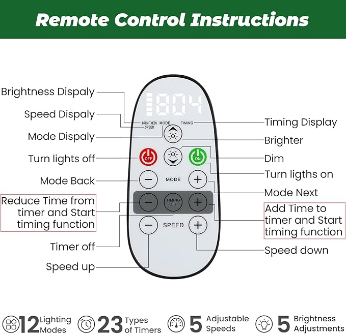- 🎄【Timer Function】The remote control allows for personalized daily lighting duration settings (1-23 hours), after which the lights will automatically turn on and off each day