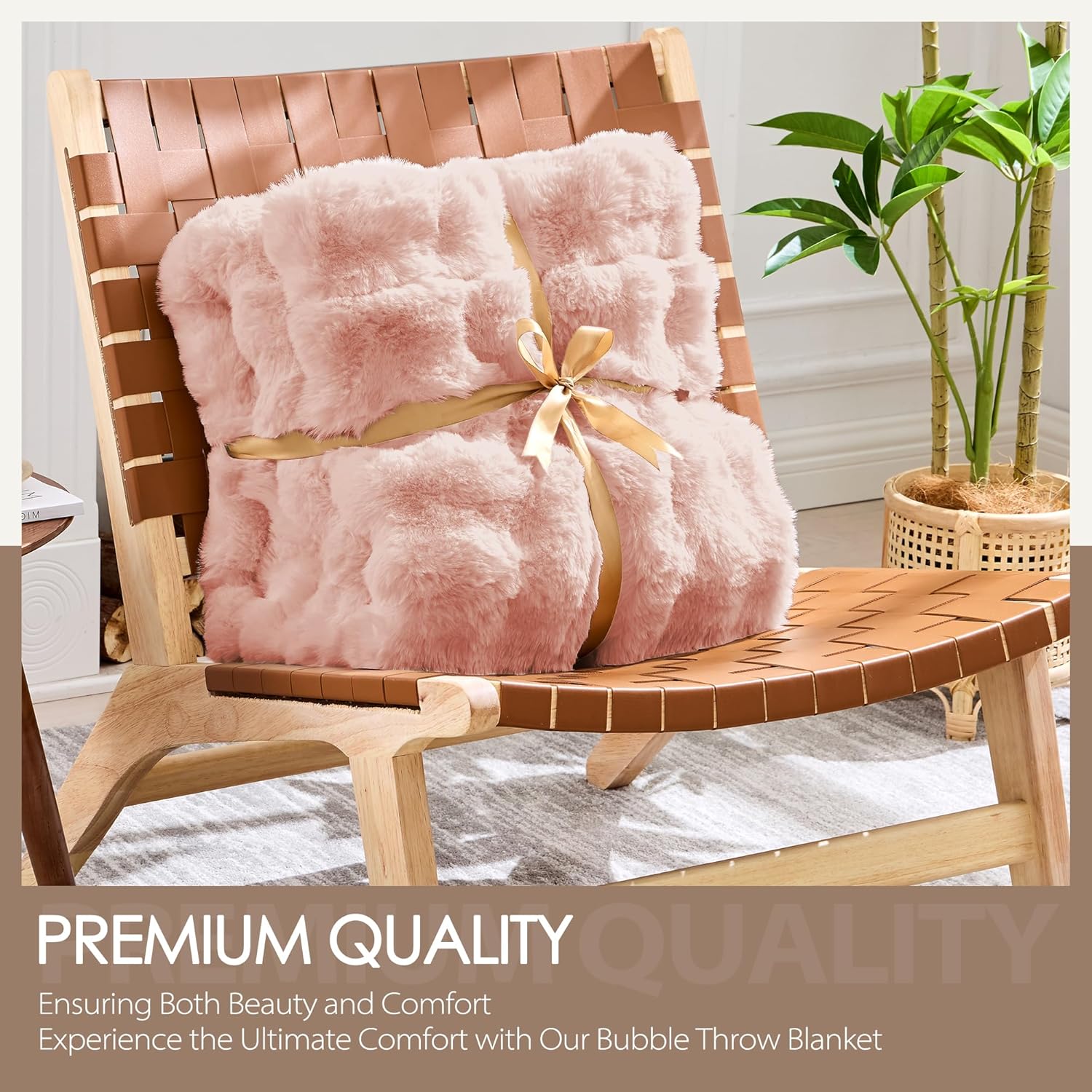 - LUXURIOUS COZY FAUX RABBIT FUR FABRIC: This bubble blanket is crafted from 780GSM plush faux rabbit fur fabric for warmth and comfort, and 220GSM crystal velvet fabric lining for silky softness. The furry faux rabbit fur throw blanekt feel as soft as clouds and gently wrap you like a warm embrace, giving you a comfortable double-sided experience, making you feel cozy all winter long.
