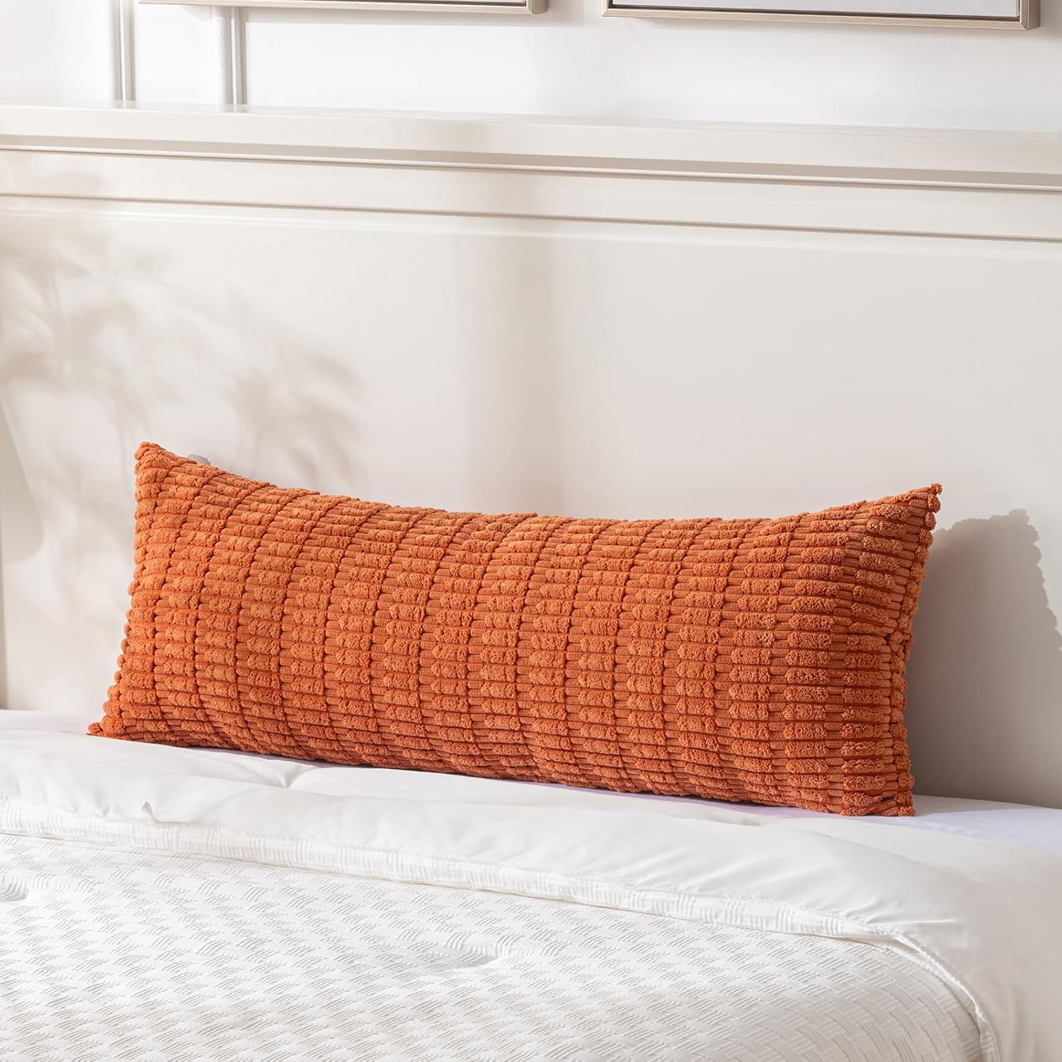 Fancy Homi Burnt Orange Long Body Lumbar Decorative Throw Pillow Cover 20x54 Inch for Bedroom Couch Bed Sofa, Farmhouse Boho Fall Room Decor, Soft Striped Corduroy Rectangle Pillow Case