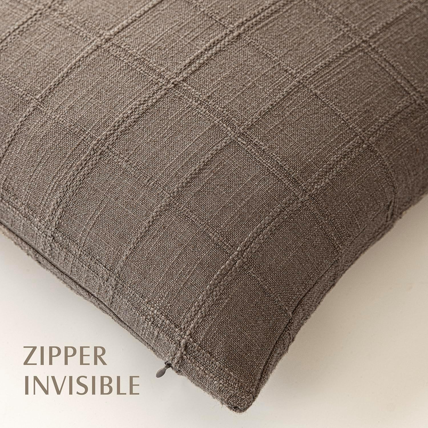 Foindtower Set of 2 Decorative Linen Check Throw Pillow Covers Neutral Farmhouse Lumbar Cushion Covers Modern Boho Home Decor for Sofa Chair Couch Bedroom Living Room,12×20 Inch,Taupe Grey