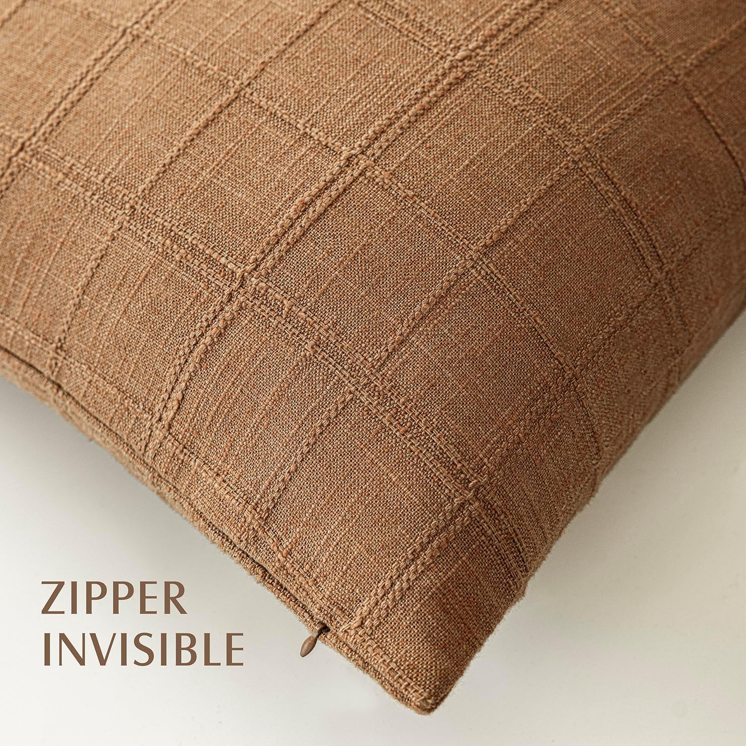 Foindtower Set of 2 Decorative Linen Check Throw Pillow Covers Neutral Farmhouse Vintage Cushion Covers Modern Boho Home Decor for Sofa Chair Couch Bedroom Living Room,24×24 Inch,Brick