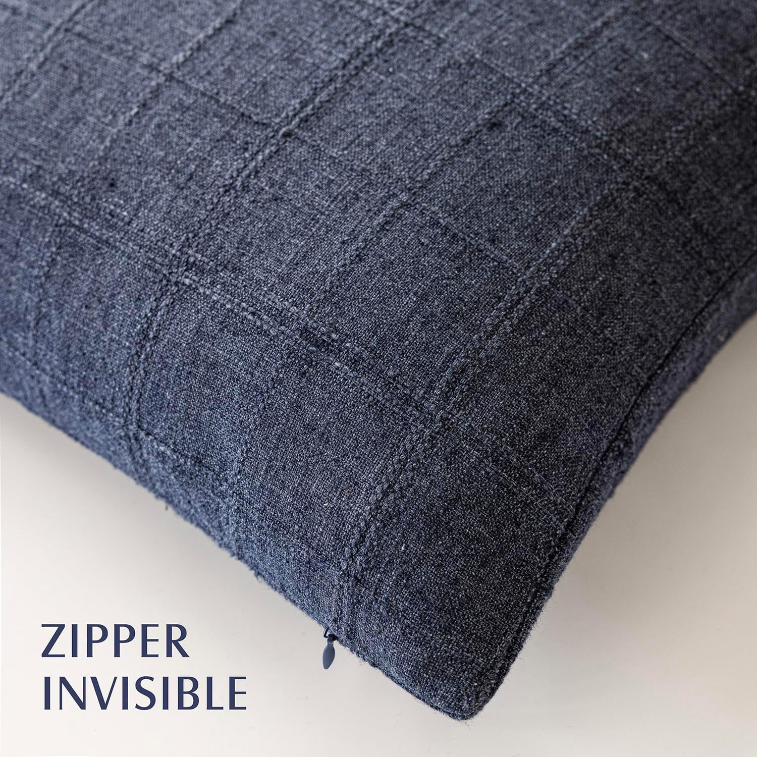 Foindtower Set of 2 Decorative Linen Check Throw Pillow Covers Neutral Farmhouse Vintage Cushion Covers Modern Boho Home Decor for Sofa Chair Couch Bedroom Living Room,24×24 Inch,Navy Blue