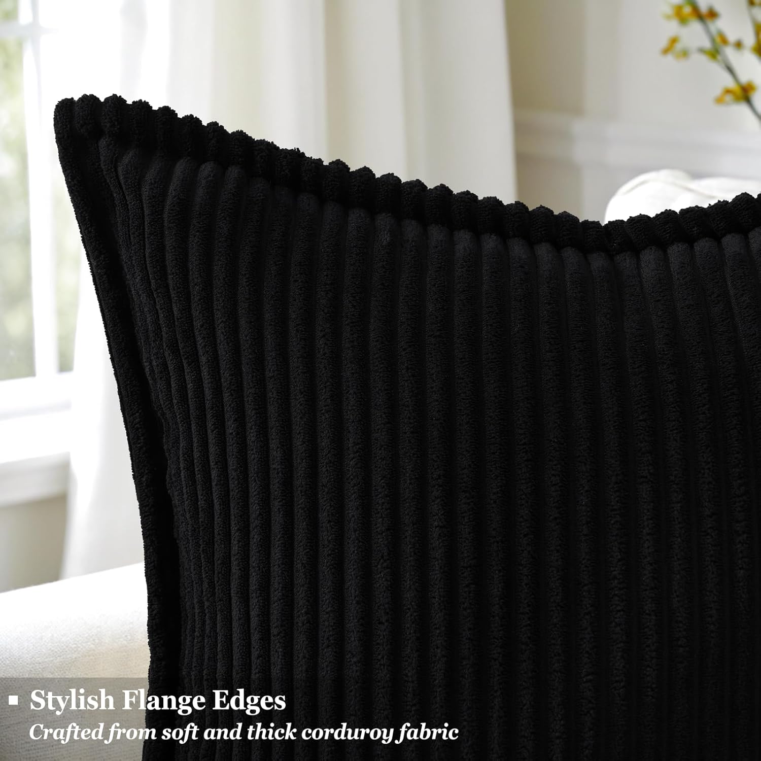decorUhome Corduroy Black Throw Pillow Covers 16x16 Set of 2 Decorative Soft Boho Farmhouse Euro Couch Pillow Covers for Living Room Bed Sofa Broadside Striped Pillow Cases