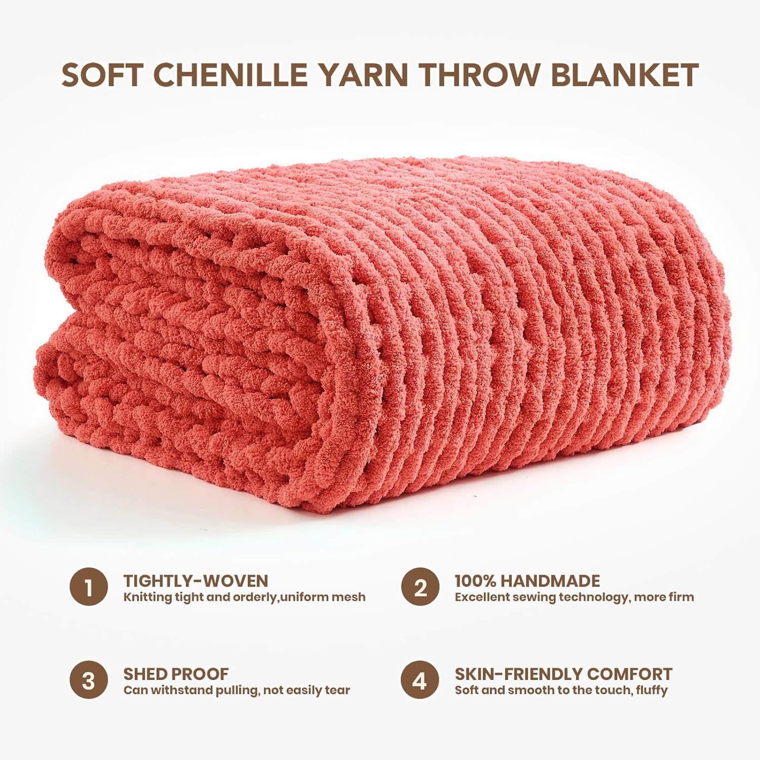 - 100% Handmade Chunky Knit Blanket: Our knit blanket throw is made from 100% hand-woven fabric with premuim Chenille yarn, excellent handcrafted knitting improves yarn density to create a warm and soft touch, full body hug to immerse you in tenderness