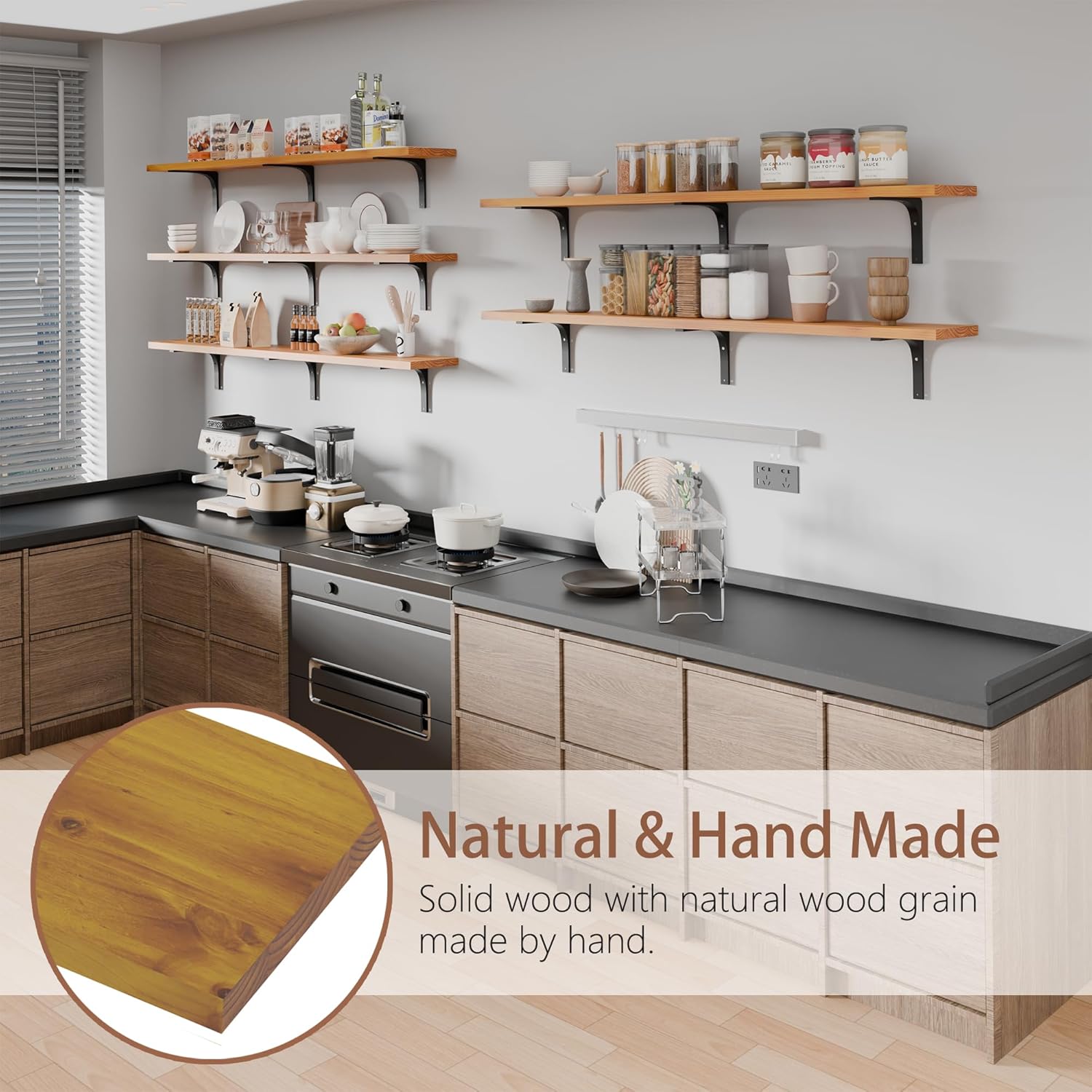 - 【Sturdy and Durable】Long floating shelf are constructed of solid wood boards with heavy duty bracket,ensuring that the shelf have an excellent load bearing capacity and are able to safely store a variety of items without worrying about the durability of the shelves.