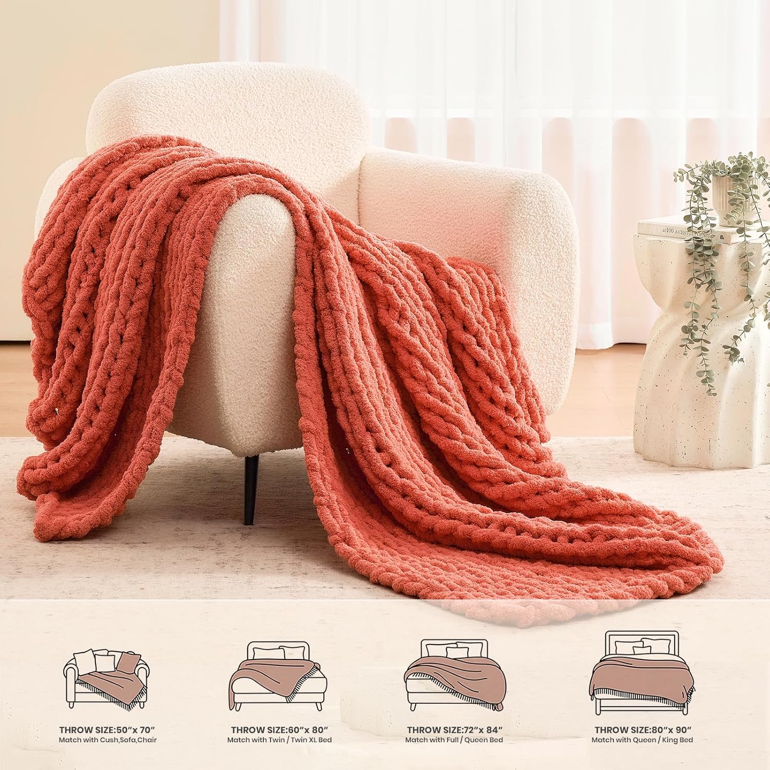 - Chenille Chunky Knit Blanket: Our cable knit blanket offers a variety of sizes and colors for you to choose from. The smallest size chunky crochet blanket can be used for kids and pets, and the large size knitted blanket chunky is suitable for adult use. This twin blanket (60 * 80 inch) is perfect for single or double use, and can be placed freely as your home decoration