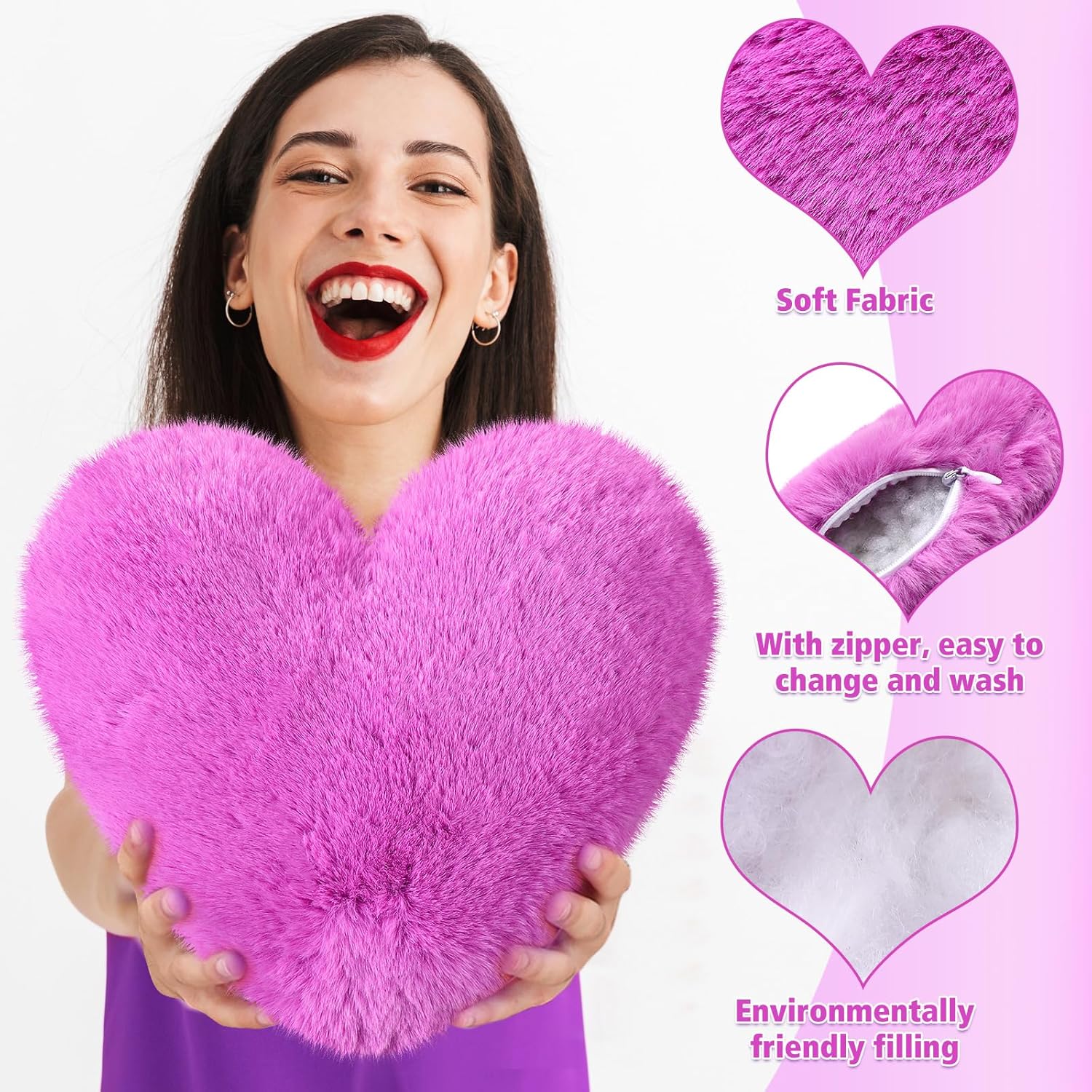 - Heart Shaped Design: our heart pillow adopts a cute heart shaped design with a furry appearance, which is more attractive to people; Different bright colors can make people feel warmth and care, and their mood will also improve when they have a good rest; Note: the product is vacuum compressed and packed; After receiving it, please pat and leave it for a period of time, will slowly restore the fluffy