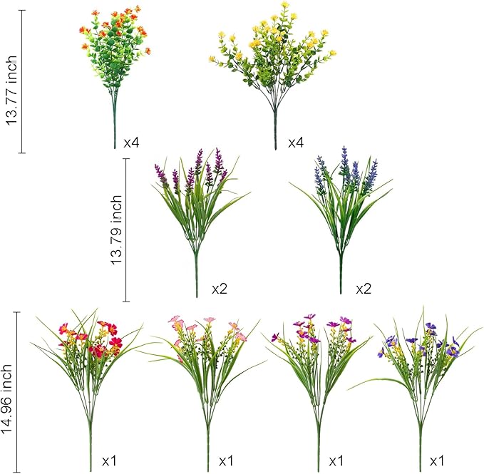 - 【Outdoor Artificial Plants Flowers】This artificial plants flowers is designed for outdoor decoration. These lifelike flowers lend gorgeous charm to your front porch, walkway, patio, and garden. It is the perfect choice for decorating daily, birthdays, holidays, weddings, memorial sites and DIY projects.