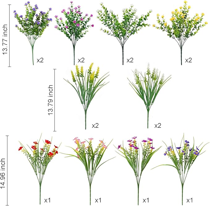 - 【Outdoor Artificial Plants Flowers】This artificial plants flowers is designed for outdoor decoration. These lifelike flowers lend gorgeous charm to your front porch, walkway, patio, and garden. It is the perfect choice for decorating daily, birthdays, holidays, weddings, memorial sites and DIY projects.