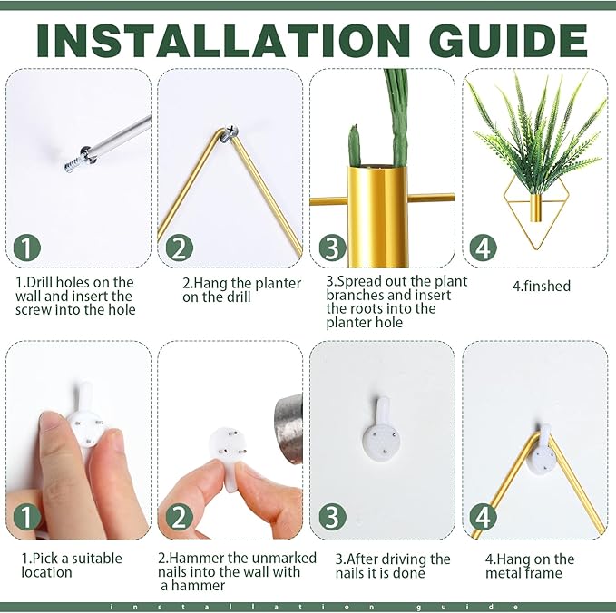- Simple and Generous: the wall vase decor is designed in triangle and rhombus shape, coordinate with classic gold color, the collision of metal iron and flower art, its simple design let it look elegant and generous, and is suitable for a variety of decoration styles, such as modern style, minimalist style, rustic style and more