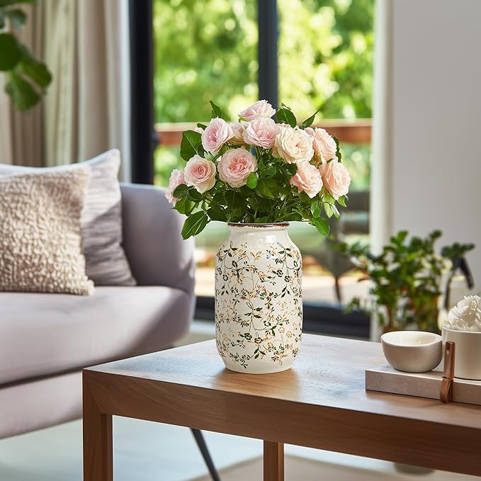 - Style :This farmhouse vase features a delicate crackle glaze and green floral patterns, making it an ideal piece for rustic decor, farmhouse decor, or chinoiserie decor