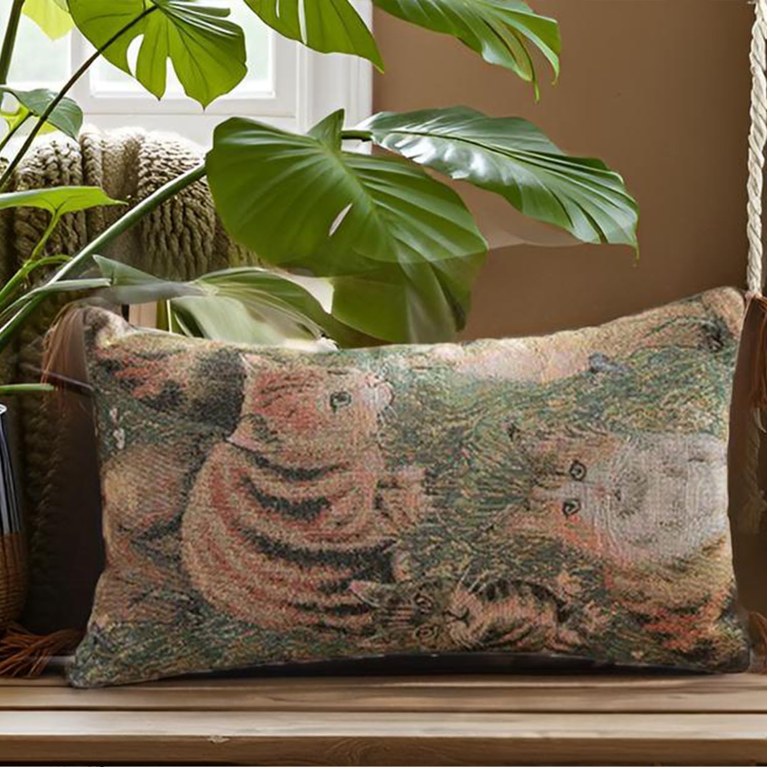 Cute Cat Garden Lumbar Throw Pillow Cover 12x 20, Art Painting Linen Pillow Cushion Cases, Farmhouse Decorative Pillows for Bed, Outdoor Couch Bedroom Car Green
