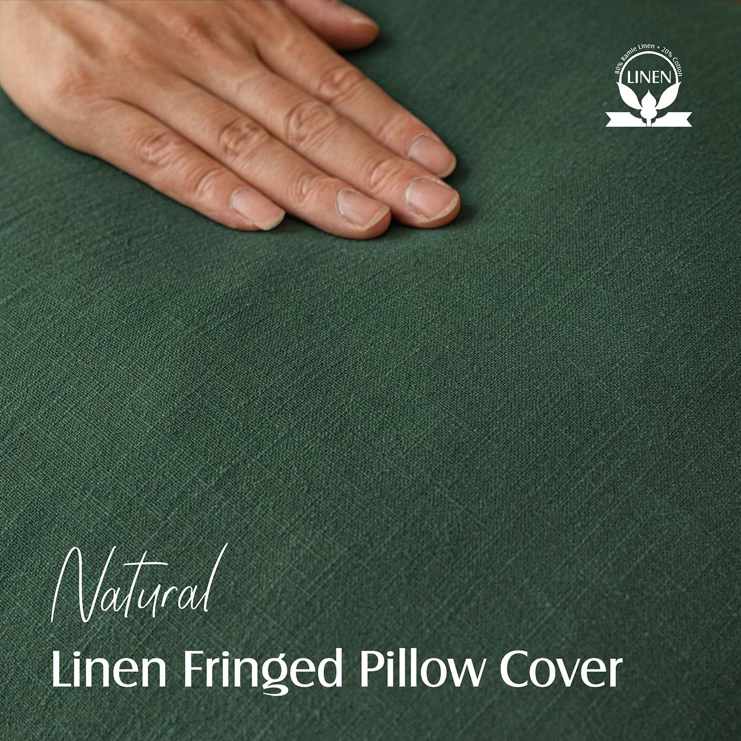 Foindtower Set of 2 Decorative Linen Fringe Throw Pillow Covers Cozy Boho Farmhouse Cushion Cover with Tassels Soft Accent Pillowcase for Couch Sofa Bed Living Room Home Decor, 20×20 Inch, Pine Green