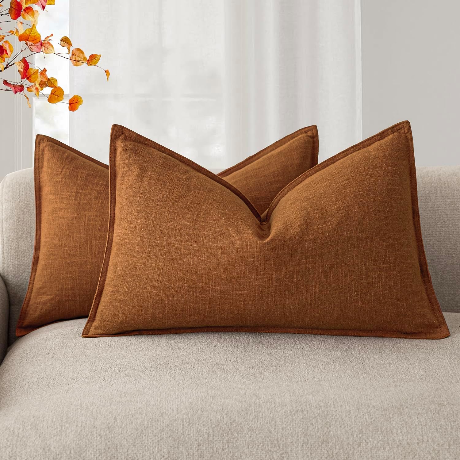 Foindtower Pack of 2, Decorative Linen Soild Throw Pillow Covers Soft Accent Lumbar Cushion Case Farmhouse Pillowcase for Chair Couch Sofa Bedroom Living Room Home Decor 12 x 20 Inch Autumn Orange