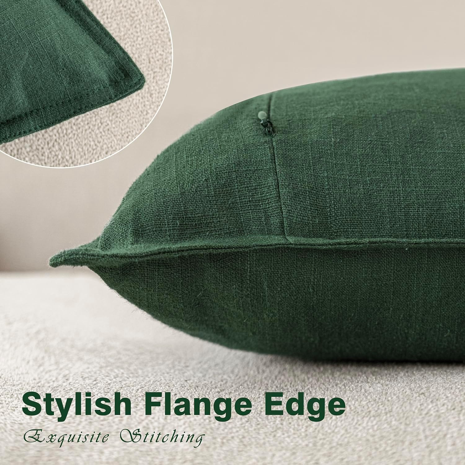 Foindtower Set of 2, Decorative Linen Soild Throw Pillow Covers Soft Accent Euro Cushion Case Farmhouse Neutral Pillowcase for Chair Couch Sofa Bedroom Living Room Home Decor 22 x 22 Inch Pine Green