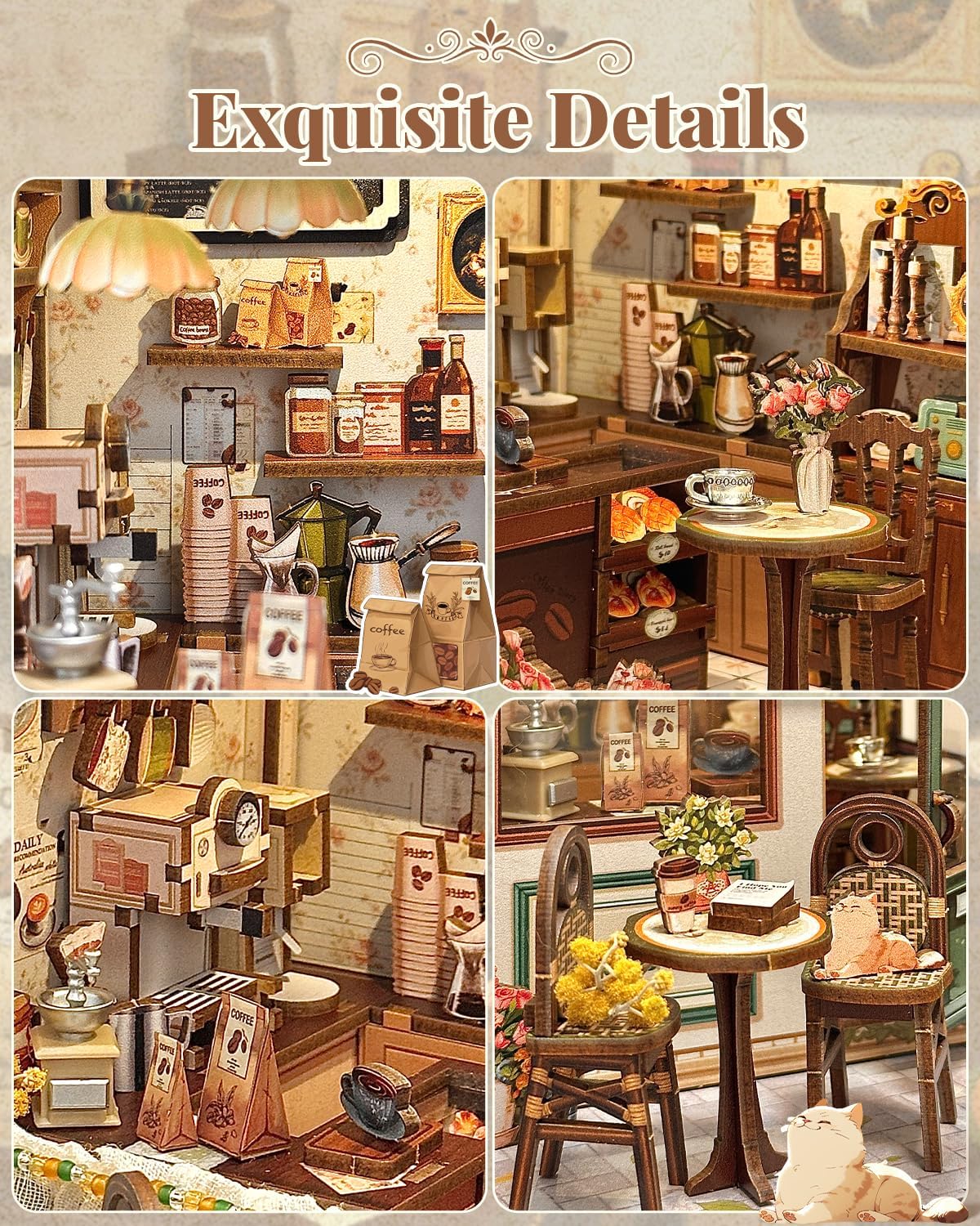 - Exquisite Sunny Cafe Book Nook Kit - Come to build this Sunny Cafe miniature house to encounter a piece of tenderness amidst the hustle and bustle of the city. This is a healing space woven with coffee, sunshine and stories. No matter rain or shine, there is always a piece of brightness hidden here. Every sip here is a gentle tribute to life, and every time you look up, you can meet your own piece of clear sky!