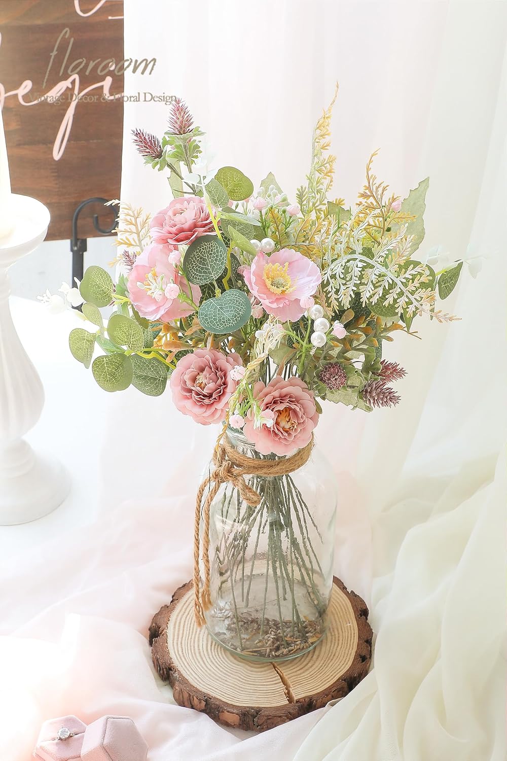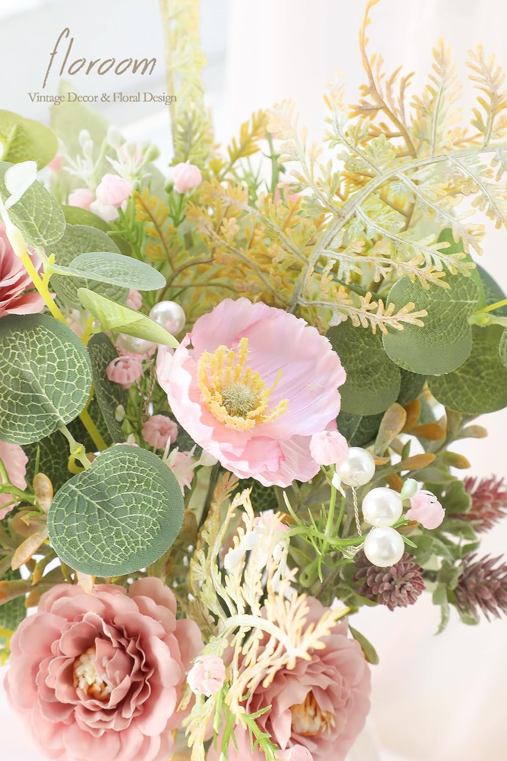 - ❤️ What You Get: Includes olive leaves, poppies, peonies, eucalyptus leaves, baby's breath, pearl sticks and more.