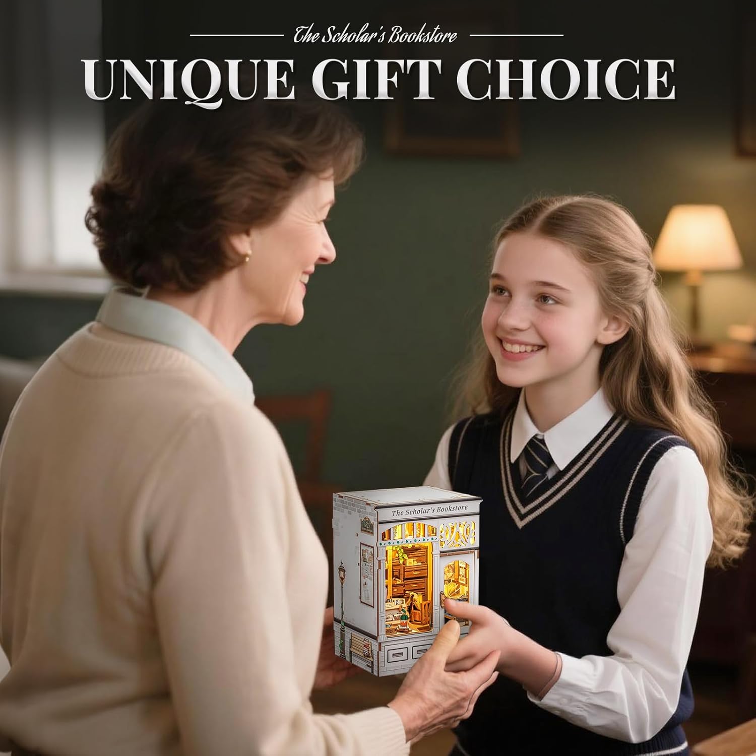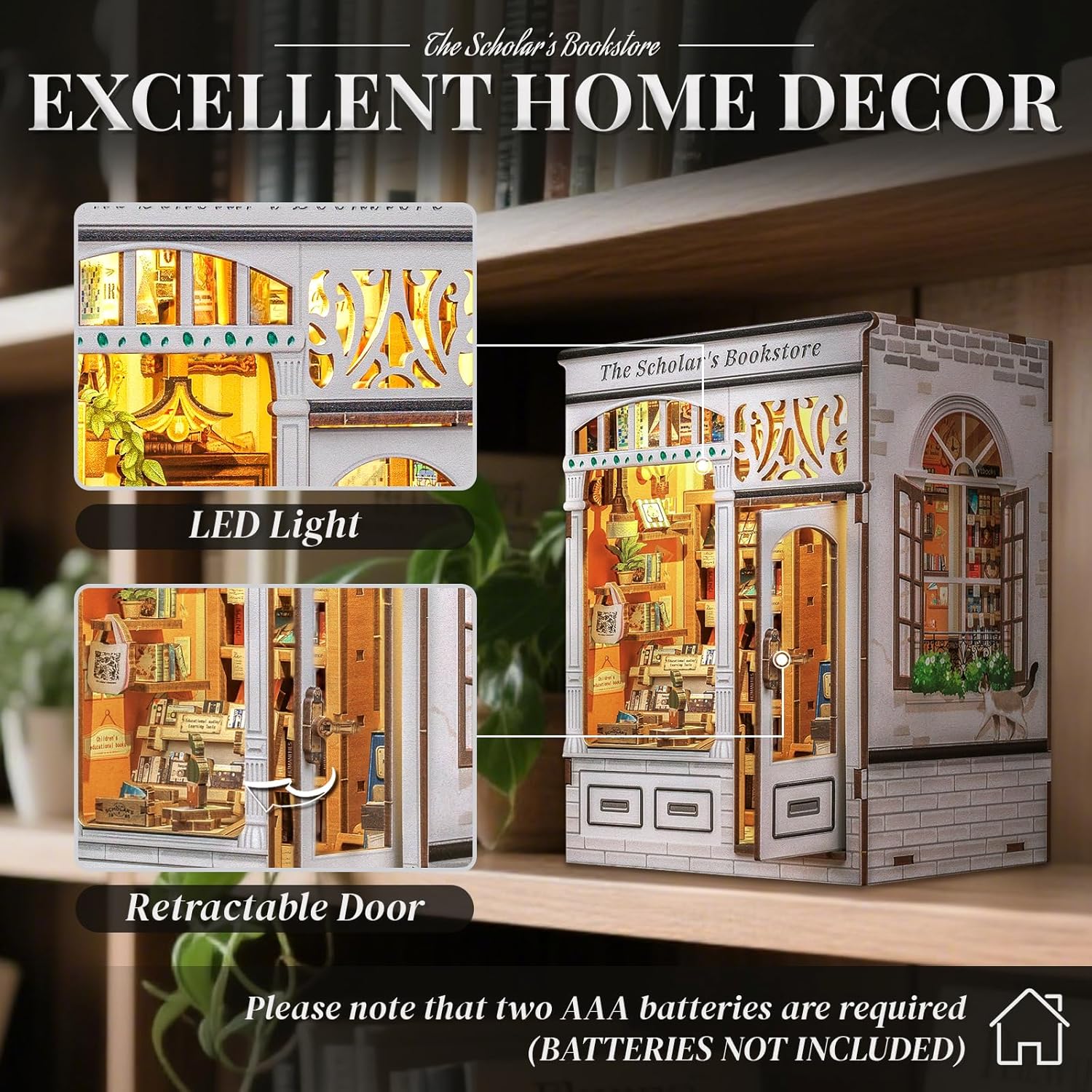 - [CREATIVE DIY PROJECT] We designed this miniature The Scholar's Bookstore tiny house kit specially for beginners and also anyone who loves DIY crafts. Meet the gorgeous little nook with amazing details. This Cutefun book nook is pretty lightweight is a nice statement piece on book shelf.