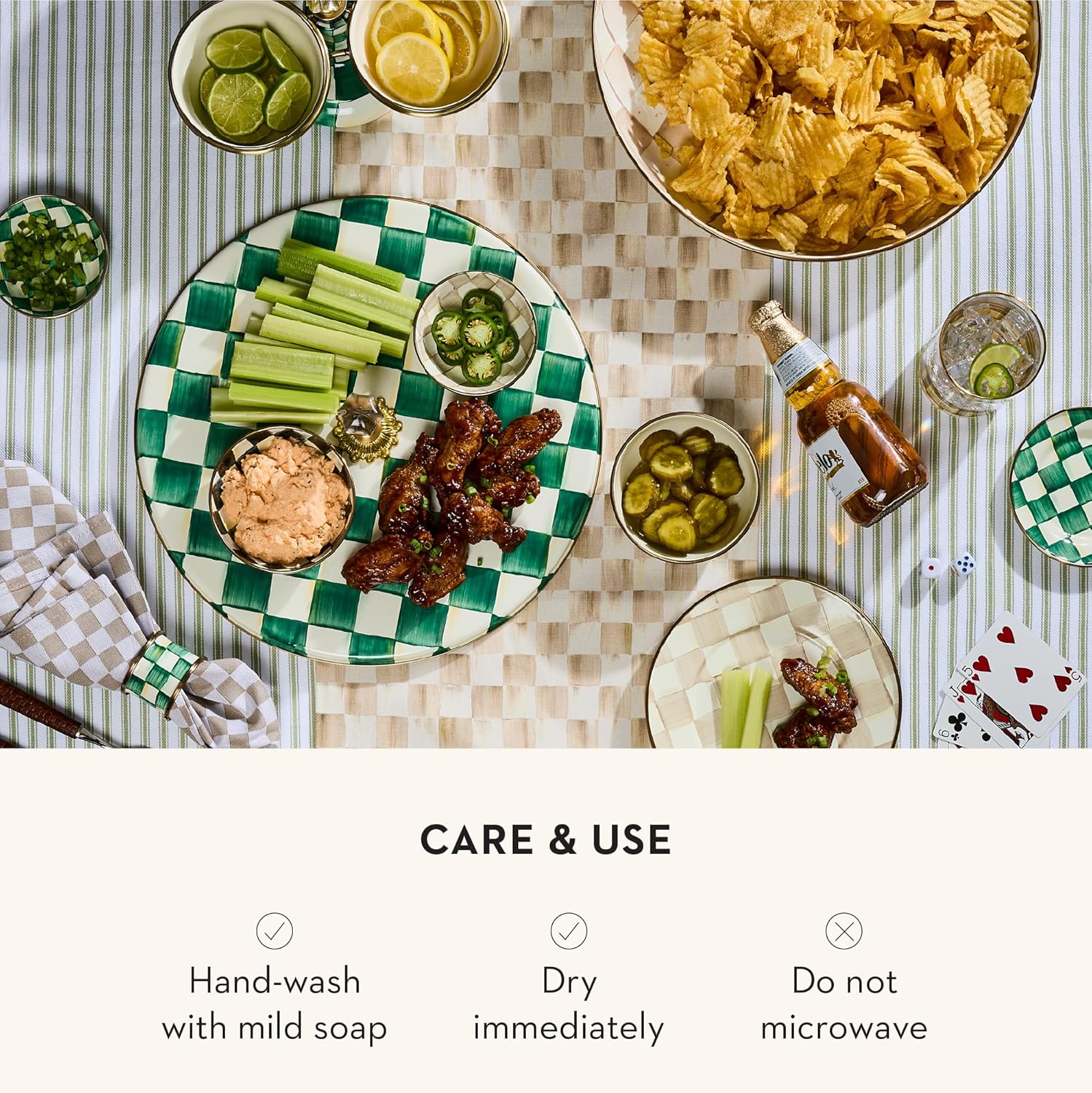 MACKENZIE-CHILDS Enamel Dipping Bowl, Small Serving Bowl for Entertaining, Green-and-White Emerald Check