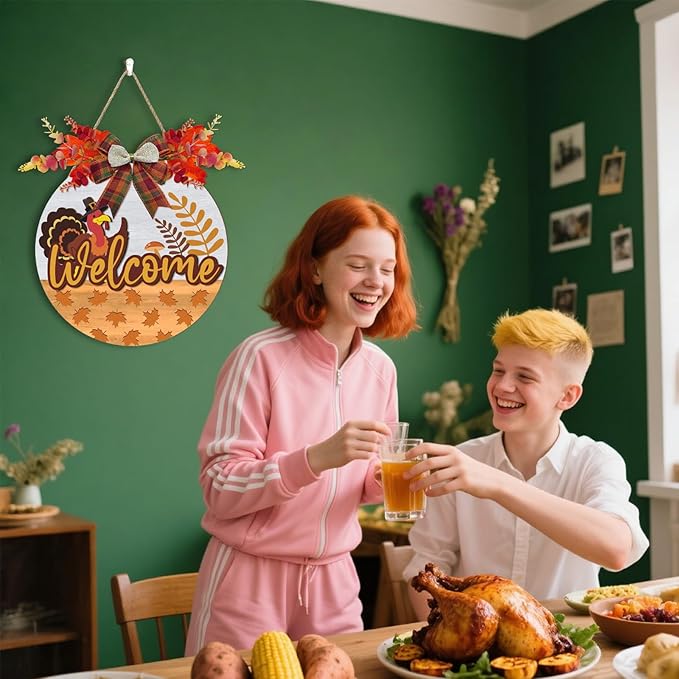 - Autumn Turkey Wall Decor Application:This welcome fall door wreath perfect for porch,yard,backyard,living room,home,playroom,garden,farmhouse,office or any other space.This is a perfect choice as a gift for friends