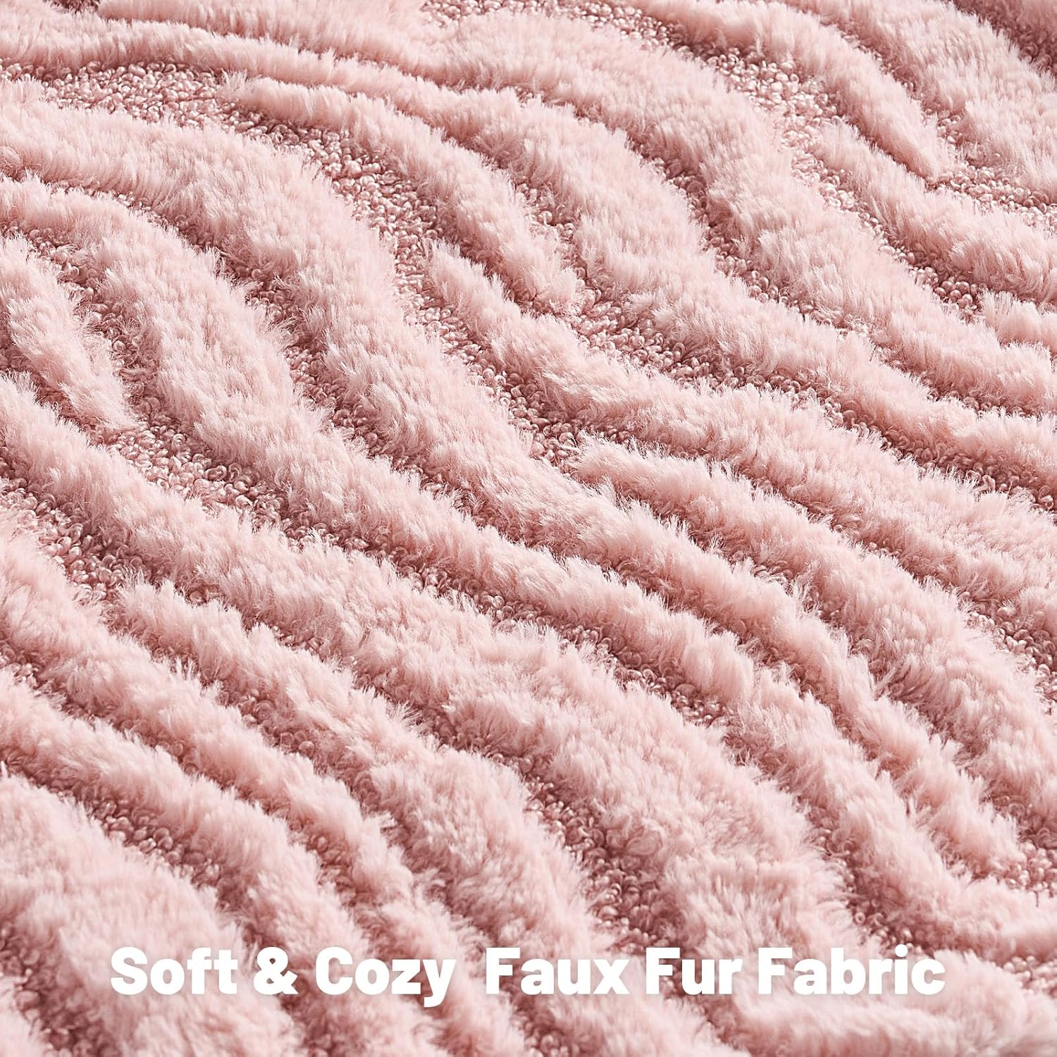 - Ultra-soft faux fur fabric on both sides,adorned with a dimensional geometric ripple texture.