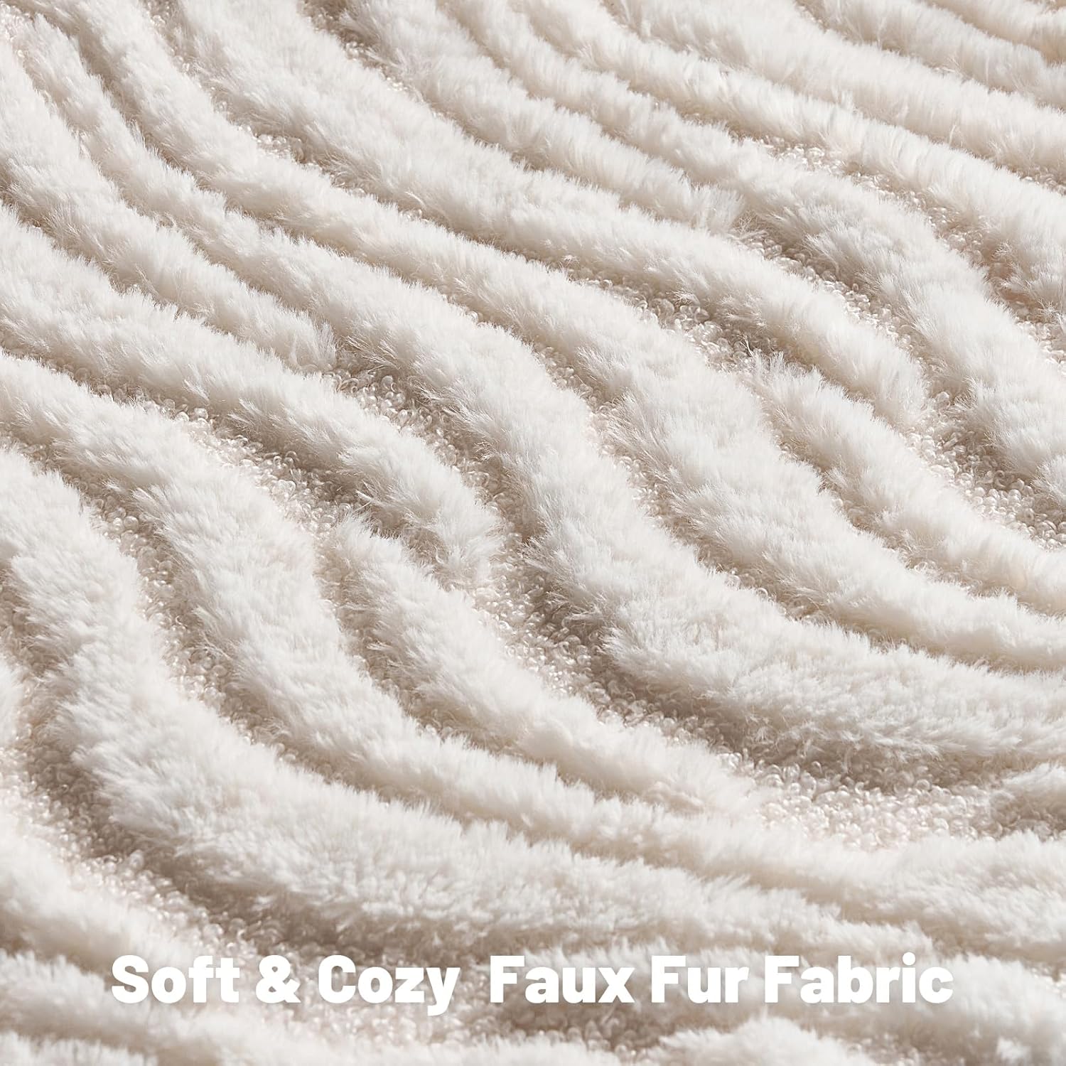 - Ultra-soft faux fur fabric on both sides,adorned with a dimensional geometric ripple texture.