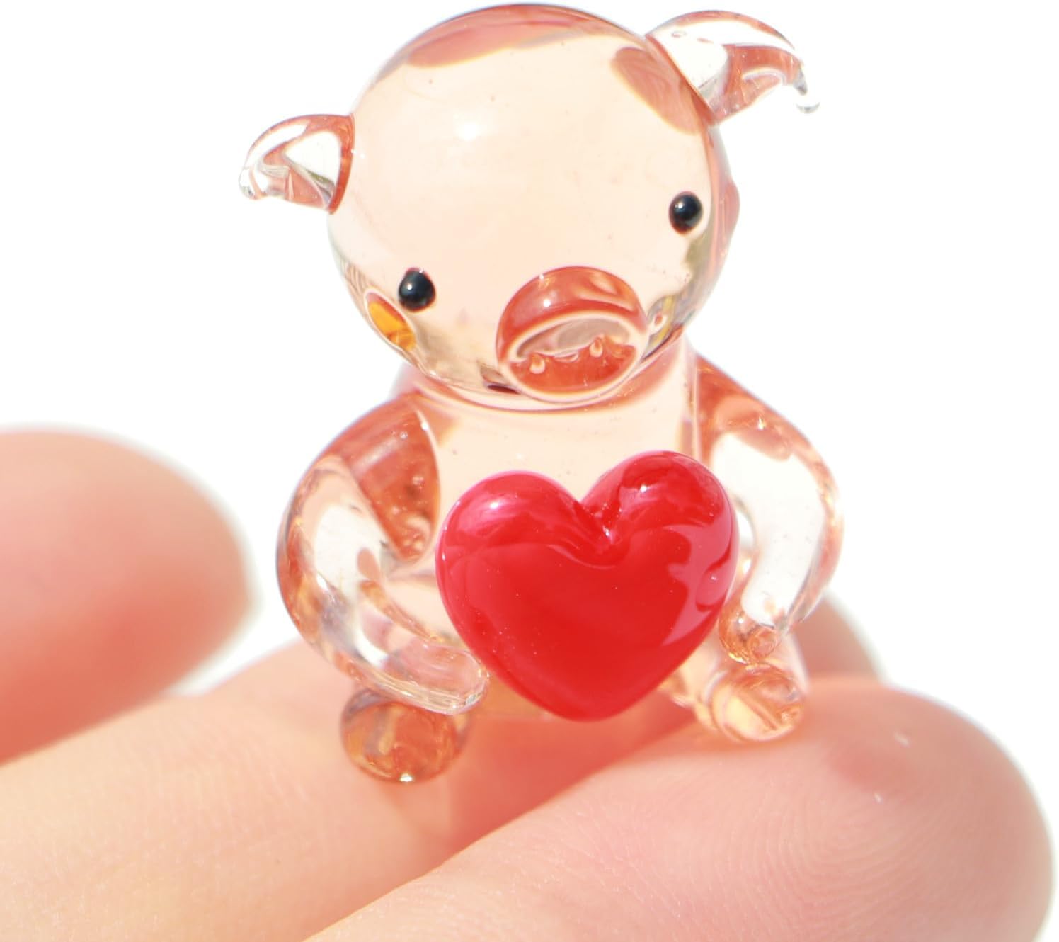 Miniature Hand Blown Glass Pig Figurine Crystal Animal Decor, Home Statues Collectible Figurines 3D Animal Ornament for Women & Men Heart