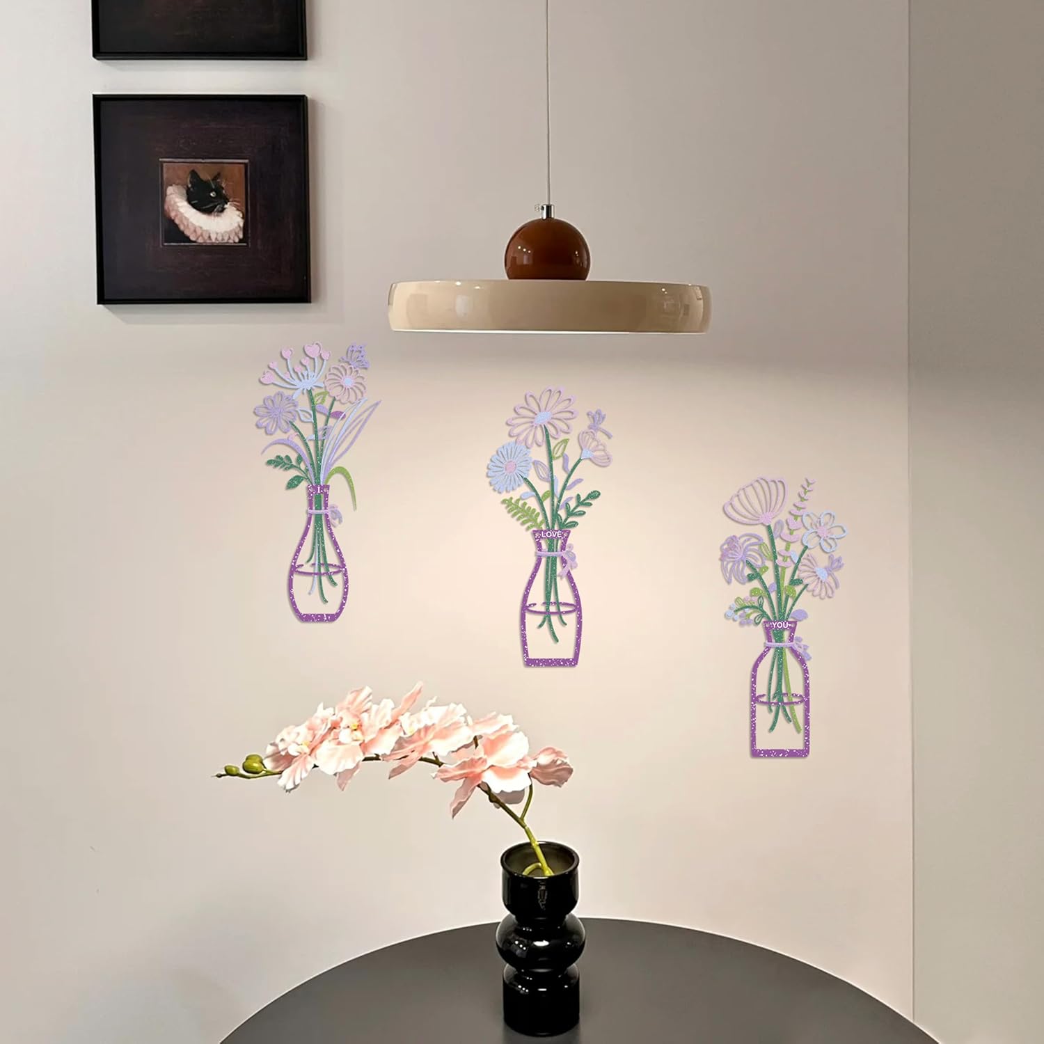 - Perfect for Any Room – RIJINDOUJIN 3-Piece Metal Flower Floral Vase Wall Art, blending minimalist design with rich color to brighten bedrooms, living rooms, hallways, kitchens, bathrooms, dining rooms, or workspaces.