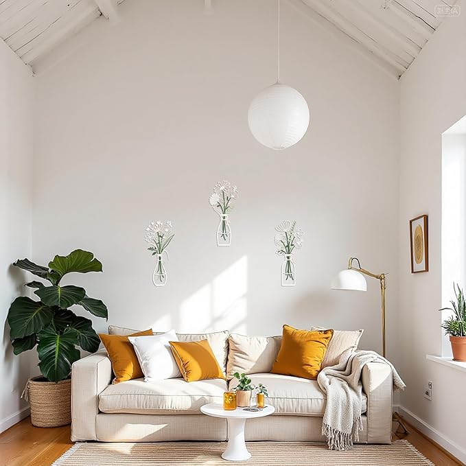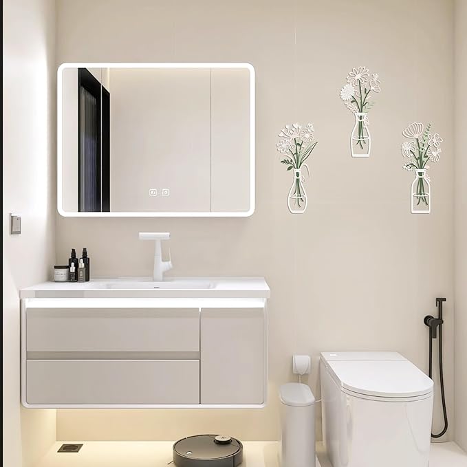 - Metal BATHROOM WALL DECOR SET: Letter-Free Version, Create an elegant focal point with this three-piece set of metal wall art decor. Each piece measures 13.8" x 6.3" and features delicate floral silhouettes for a modern, wordless look.
