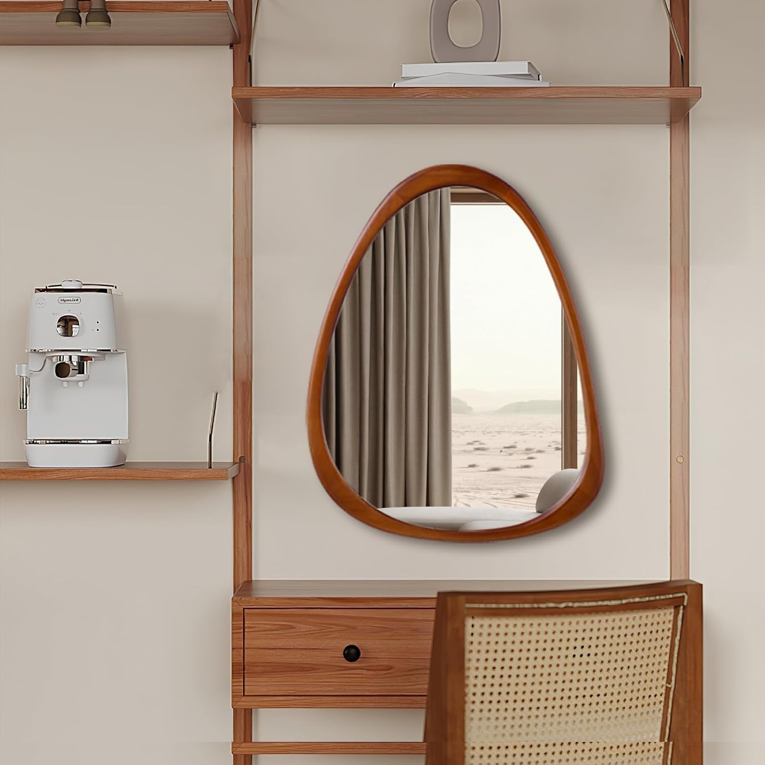 COOL2DAY Irregular Mirror,Asymmetrical Wood Wall Frame Abstract Assymetrical Decorative Mirror,Odd Shaped Mirrors for Living Room Bedroom Entryway Bathroom Home Decor(34"x 26")