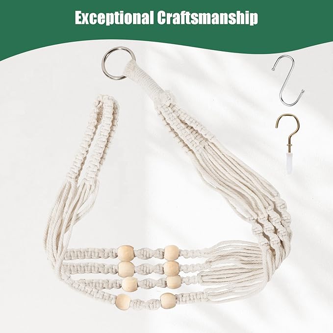 - Pet-Friendly Floating Garden: Tassel-free macrame plant hangers keep plants safe from curious pets while holding 12-lb loads. Use dye-free cotton hangers to display toxic plants high up or arrange fake hanging baskets in sunrooms. Includes 2x35" hangers for instant patio ceiling displays or window succulent arrangements