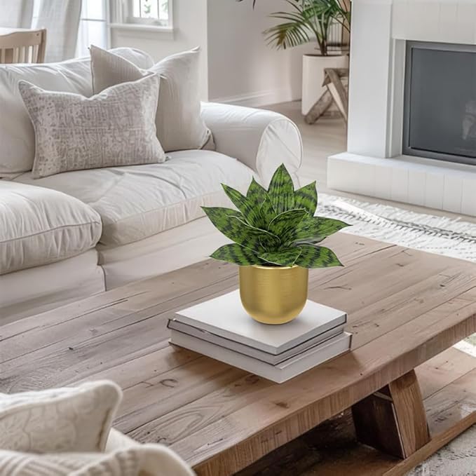 - Perfect Size: Faux snake plant in gold pots total height: 9", gold metal pot: 2.5 "W x 3.7 "H; Please read the dimensions carefully. Succulent agave plants artificial will easily catch you eyes, bring your home a vibrant sense of greenery