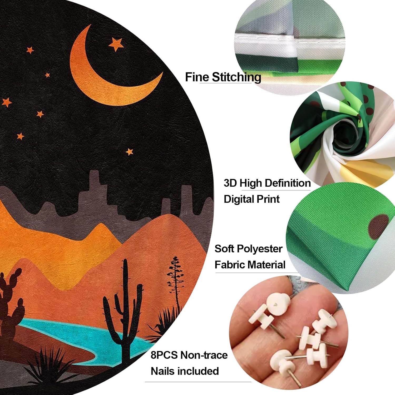 DYNH Boho Western Vertical Tapestry, Bohemian Mountain Desert Cactus Tapestries, Asthetic Minimalist Mid Century Sunset Tapestry Wall Hanging for Bedroom College Dorm Home Decor,70X90IN