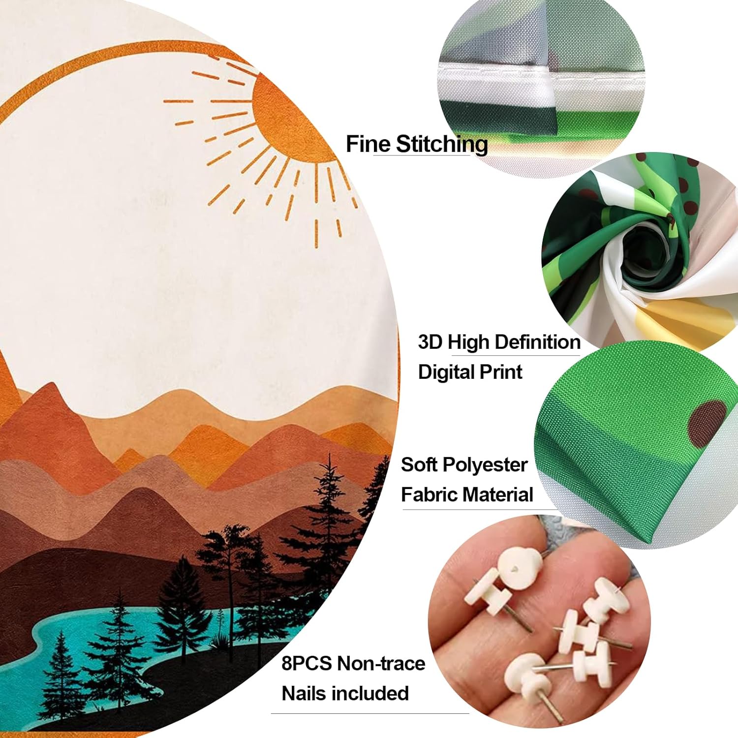 DYNH Bohemian Mountain Tapestry, Retro Nature Sunset Wall Hanging with Sun River Forest, Aesthetic Decor for Bedroom, Living Room, Dorm – Warm Bohemian Art for Home & Outdoor,70X90IN
