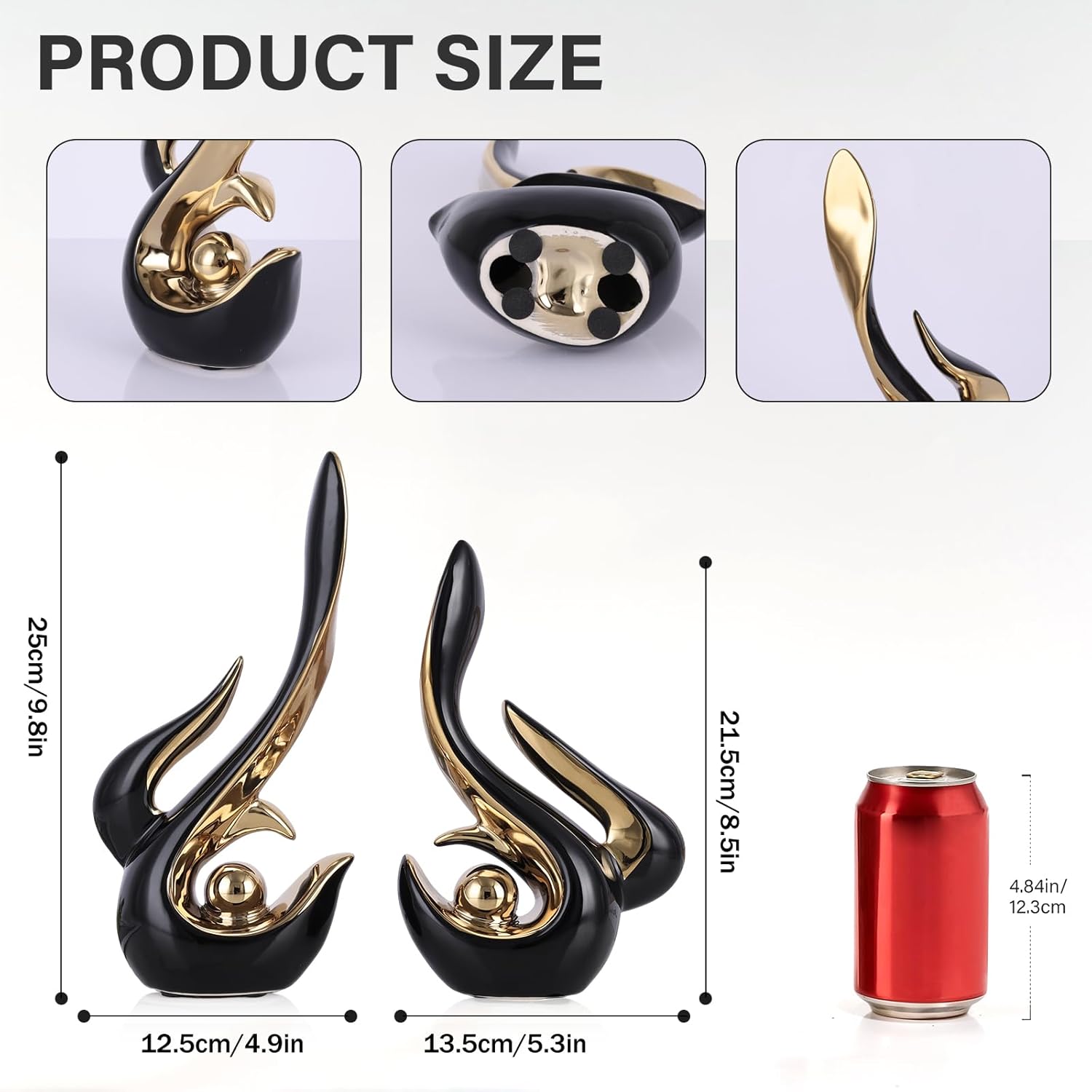 - [Unique Modern Art Decoration] This ceramic decorative sculpture, designed in a modern abstract style, presents a unique pairing of delicate shapes and golden beads, symbolizing unity and love. Perfect for use as a coffee table centerpiece, living room decor or room decor, this sculpture can add a deep artistic touch to any space and enhance the elegant atmosphere of the space.