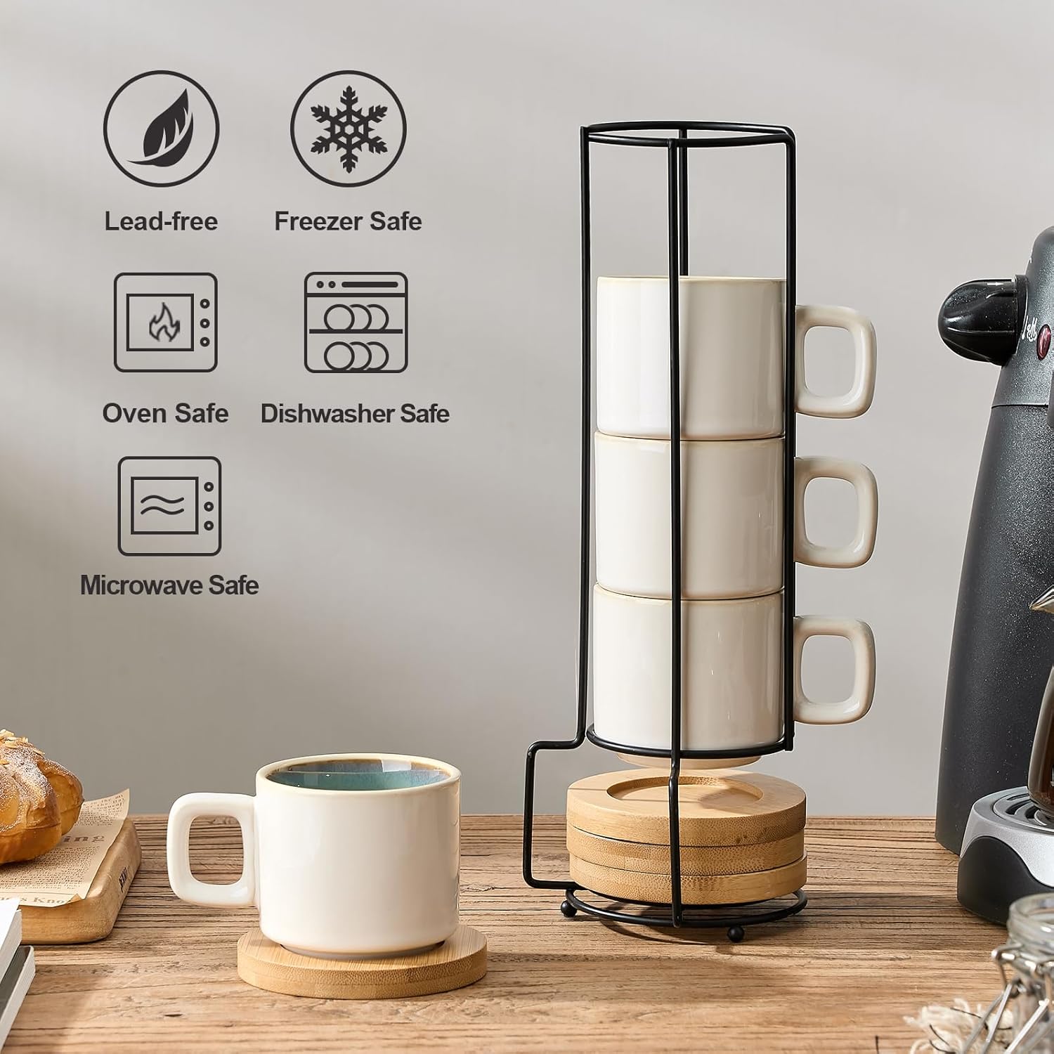 - 【Have A Coffee House Experience】A Simple yet classy design that perfectly fits your espresso maker. They have a cafe look that actually makes you feel like you're at a coffee shop abroad with our stackable espresso cups.