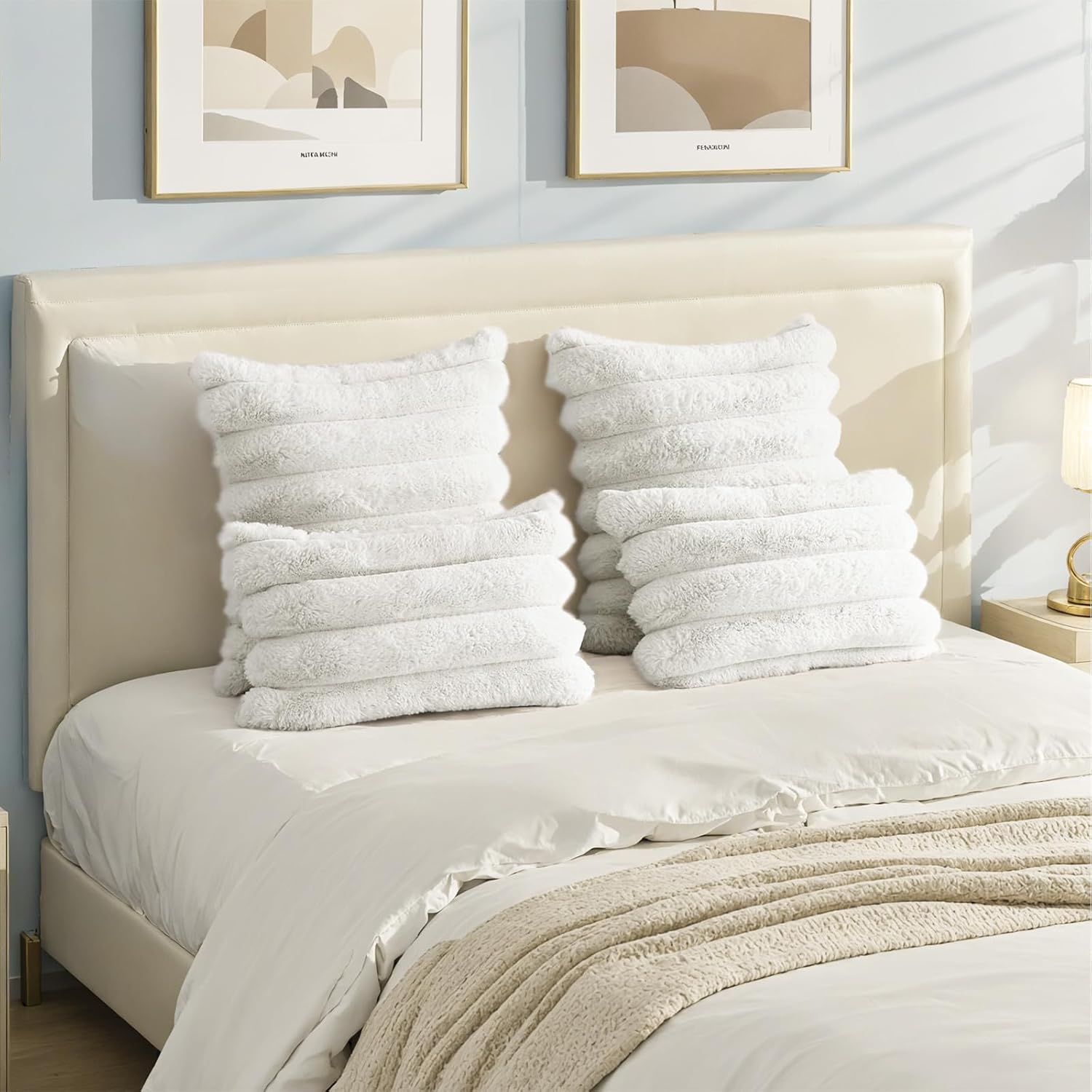 HAUSSY Faux Fur Throw Pillow Covers 20x20 Inch Set of 2,Decorative Striped Neutral Pillow Cases Soft Plush Couch Pillow Covers,Home Decor for Sofa,Bed, Living Room,Cream White