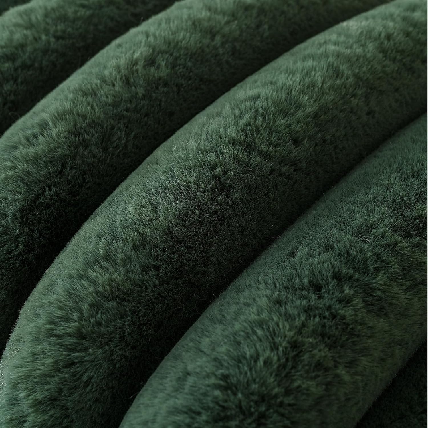 HAUSSY Faux Fur Throw Pillow Covers 22x22 Inch Set of 2,Decorative Striped Neutral Pillow Cases Soft Plush Couch Pillow Covers,Home Decor for Sofa,Bed, Living Room,Dark Green