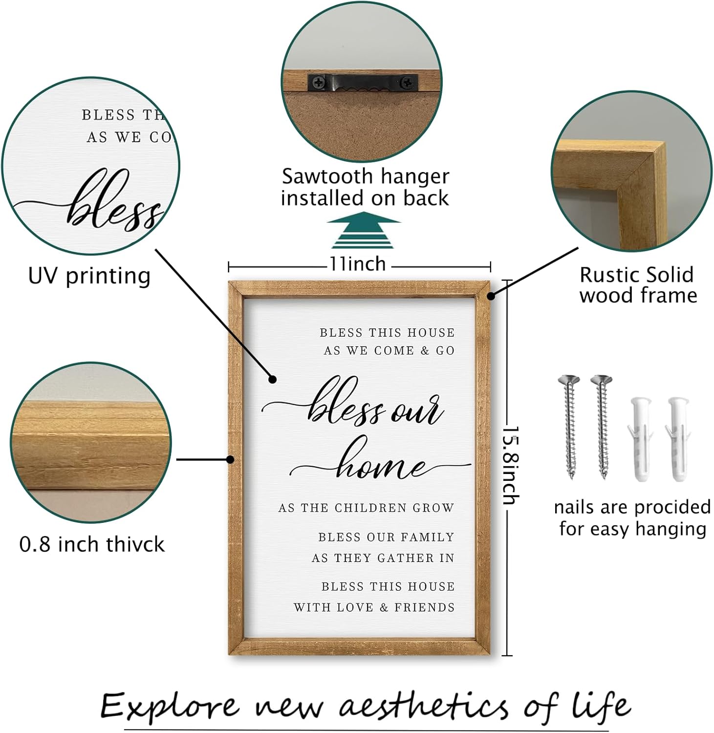 - 【Perfect Craftsmanship】: This decorative piece measures 16 inches x 11 inches x 0.8 inch and weighs 1 pounds. The frame is hand-dyed and the font is UV printed. The color is clear and the introduction is beautiful.