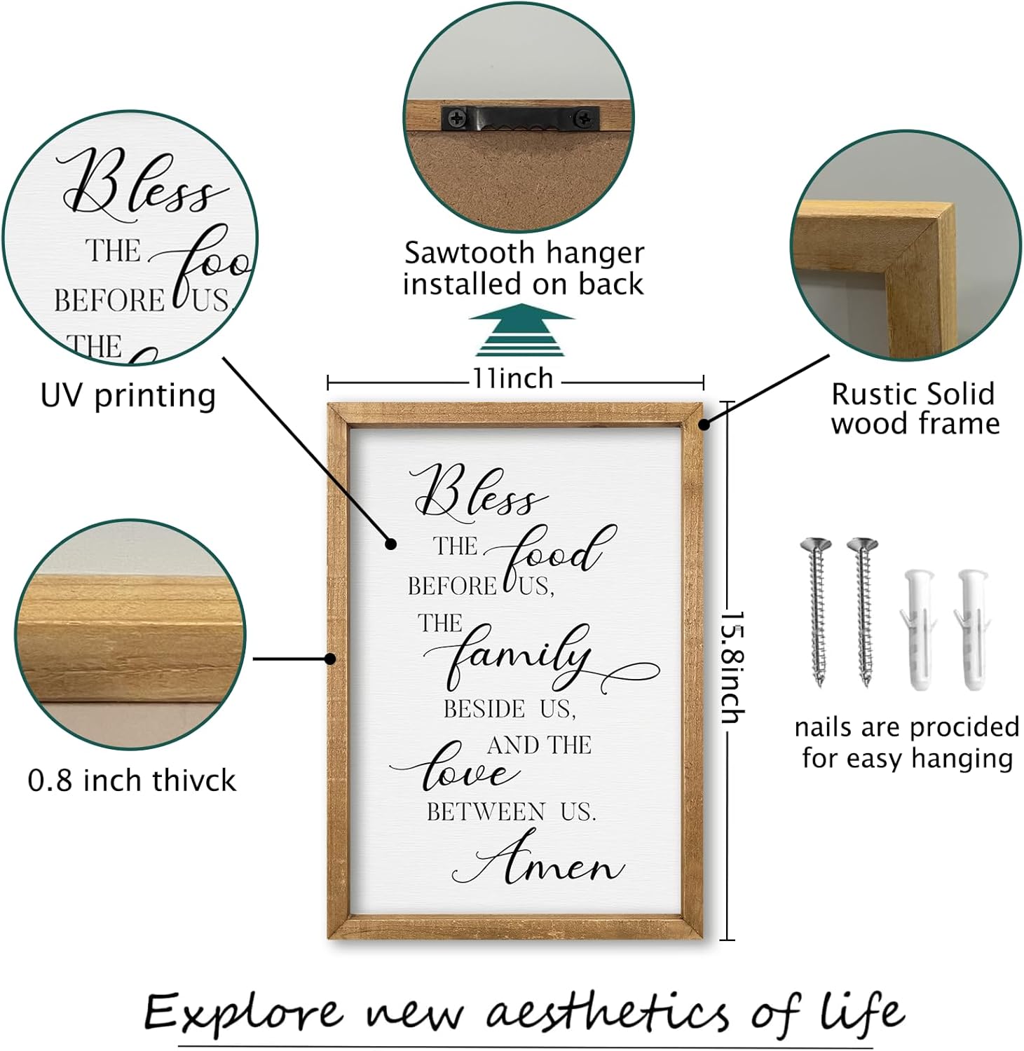 - 【Perfect Craftsmanship】: This decorative piece measures 16 inches x 11 inches x 0.8 inch and weighs 1 pounds. The frame is hand-dyed and the font is UV printed. The color is clear and the introduction is beautiful.