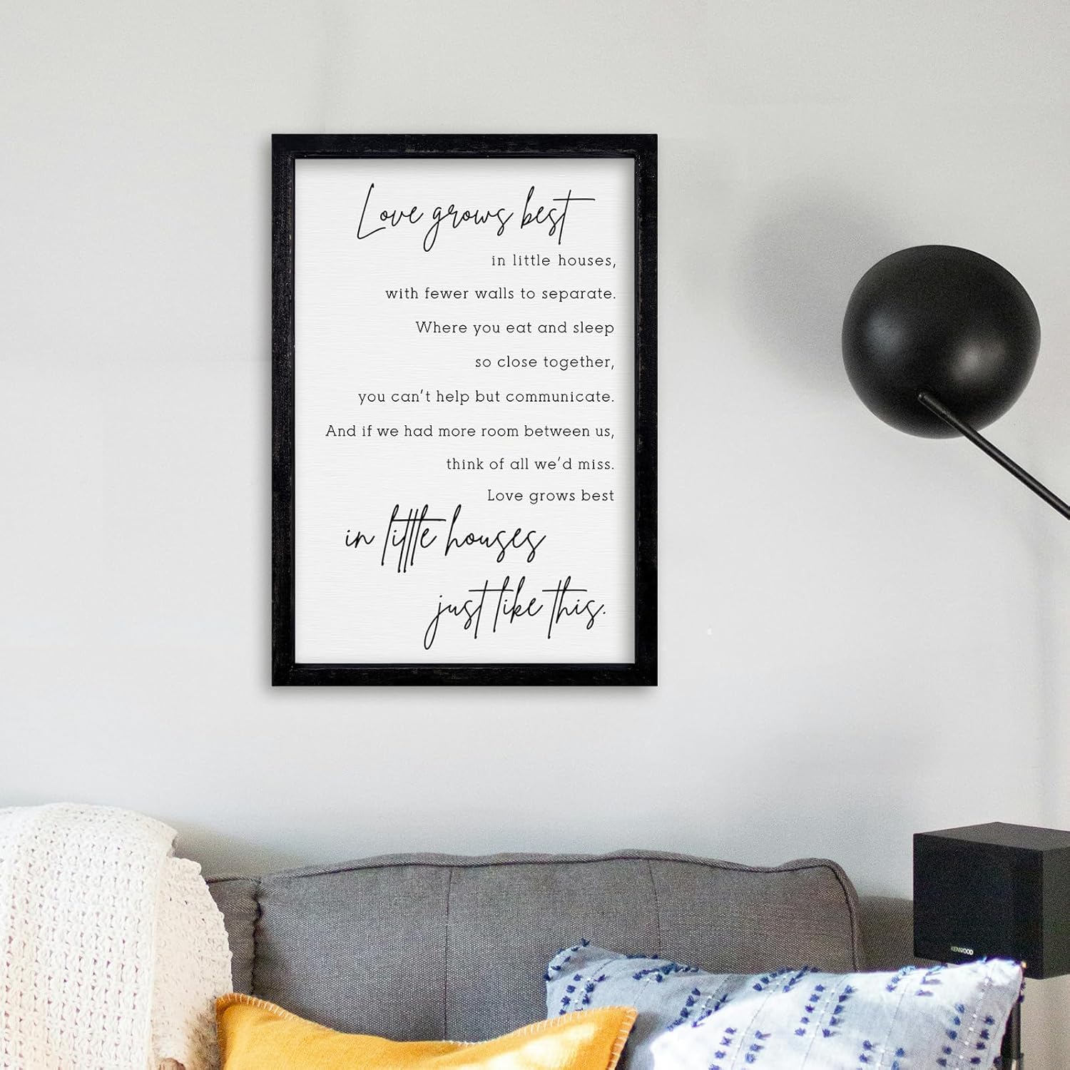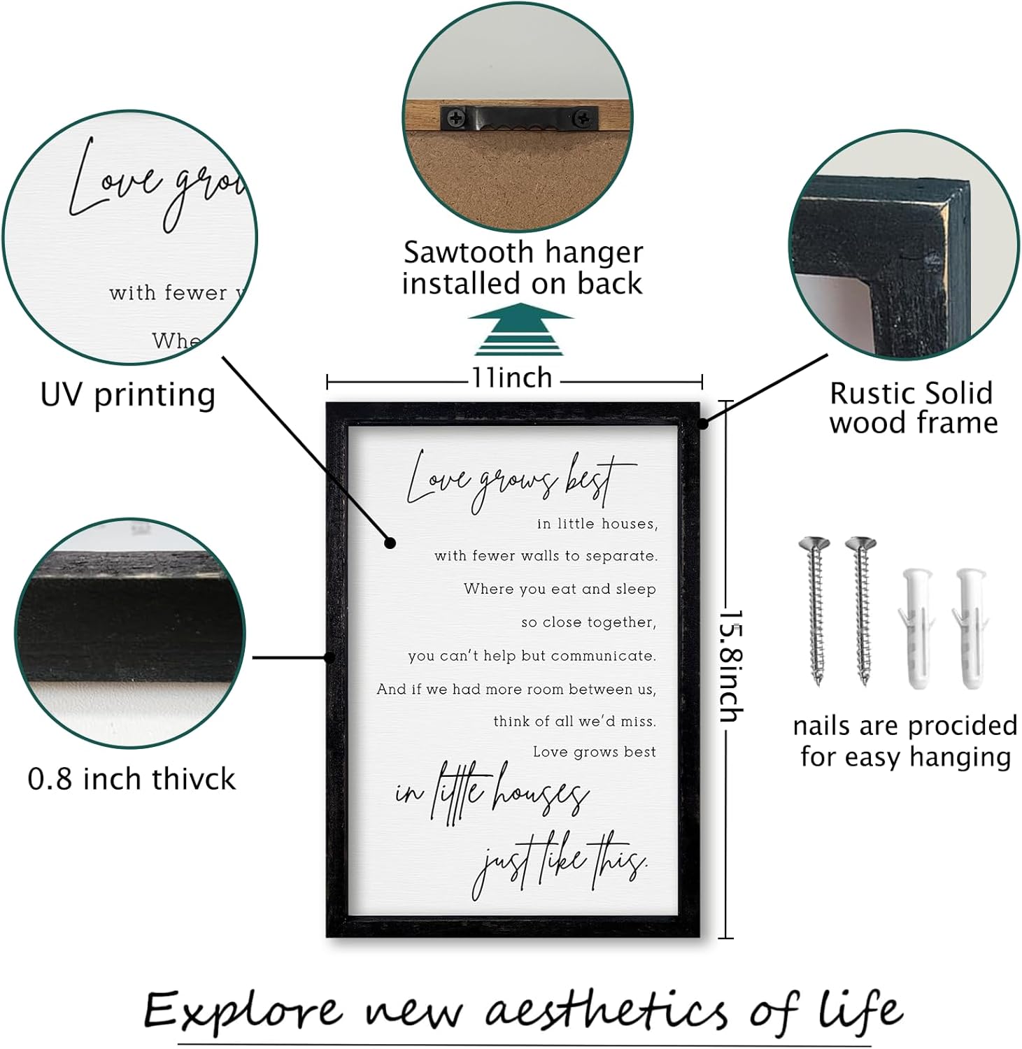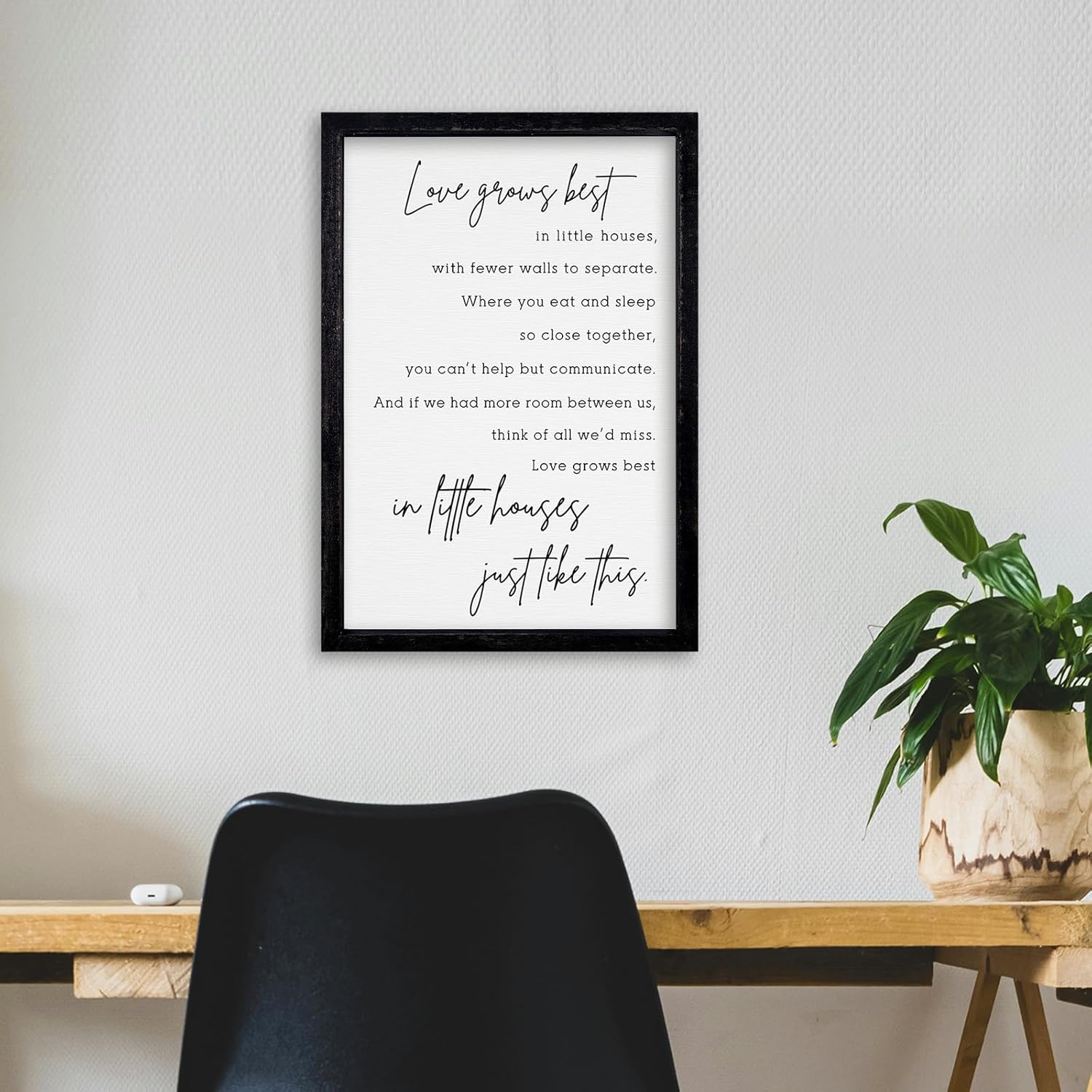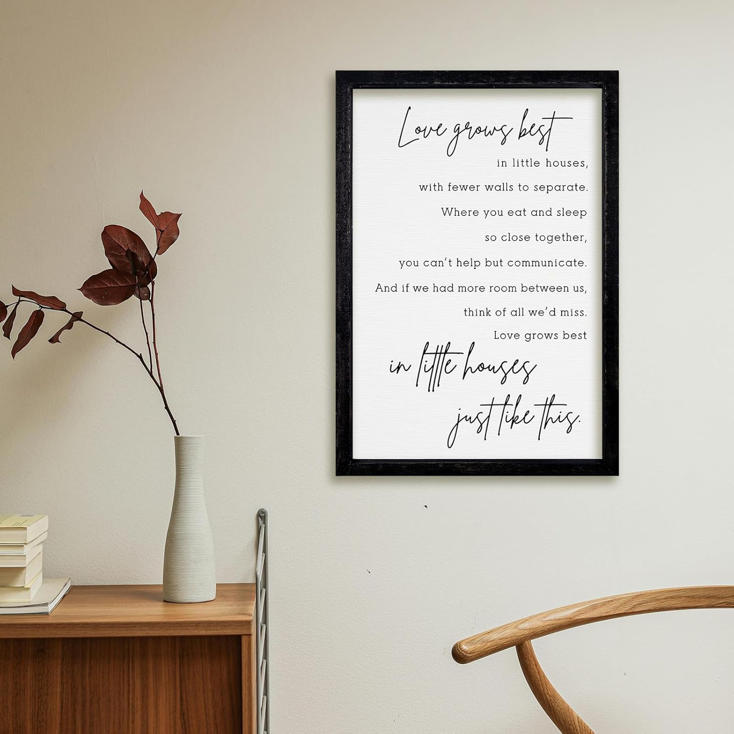 comurdyo Love Grows Best In Iittle Houses Wall Decor 16"×11" Inspirational Love Quote Sign Family Wood Framed Wall Hanging Art (Black)