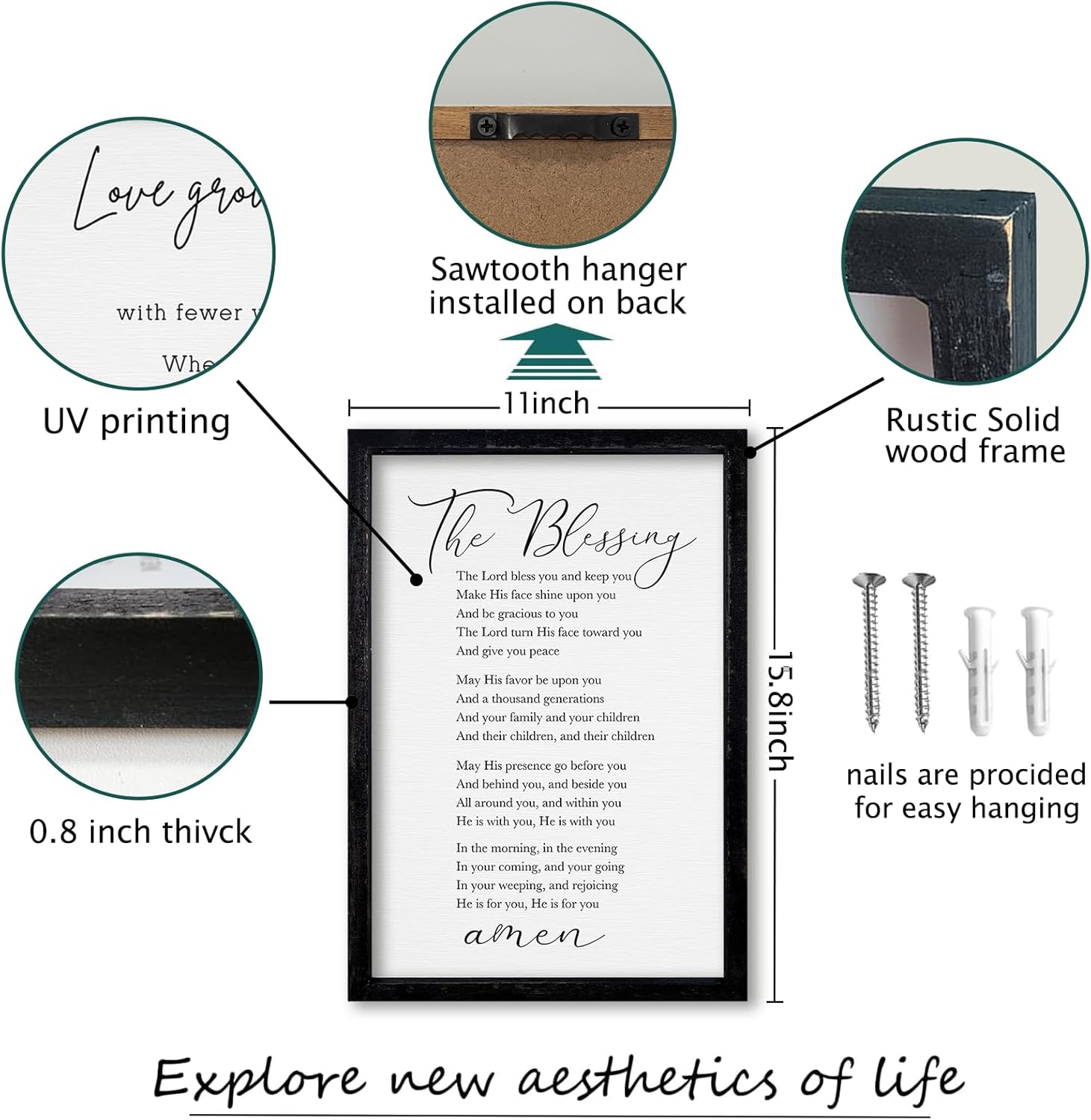 - 【Perfect Craftsmanship】: This decorative piece measures 16 inches x 11 inches x 0.8 inch and weighs 1 pounds. The frame is hand-dyed and the font is UV printed. The color is clear and the introduction is beautiful.