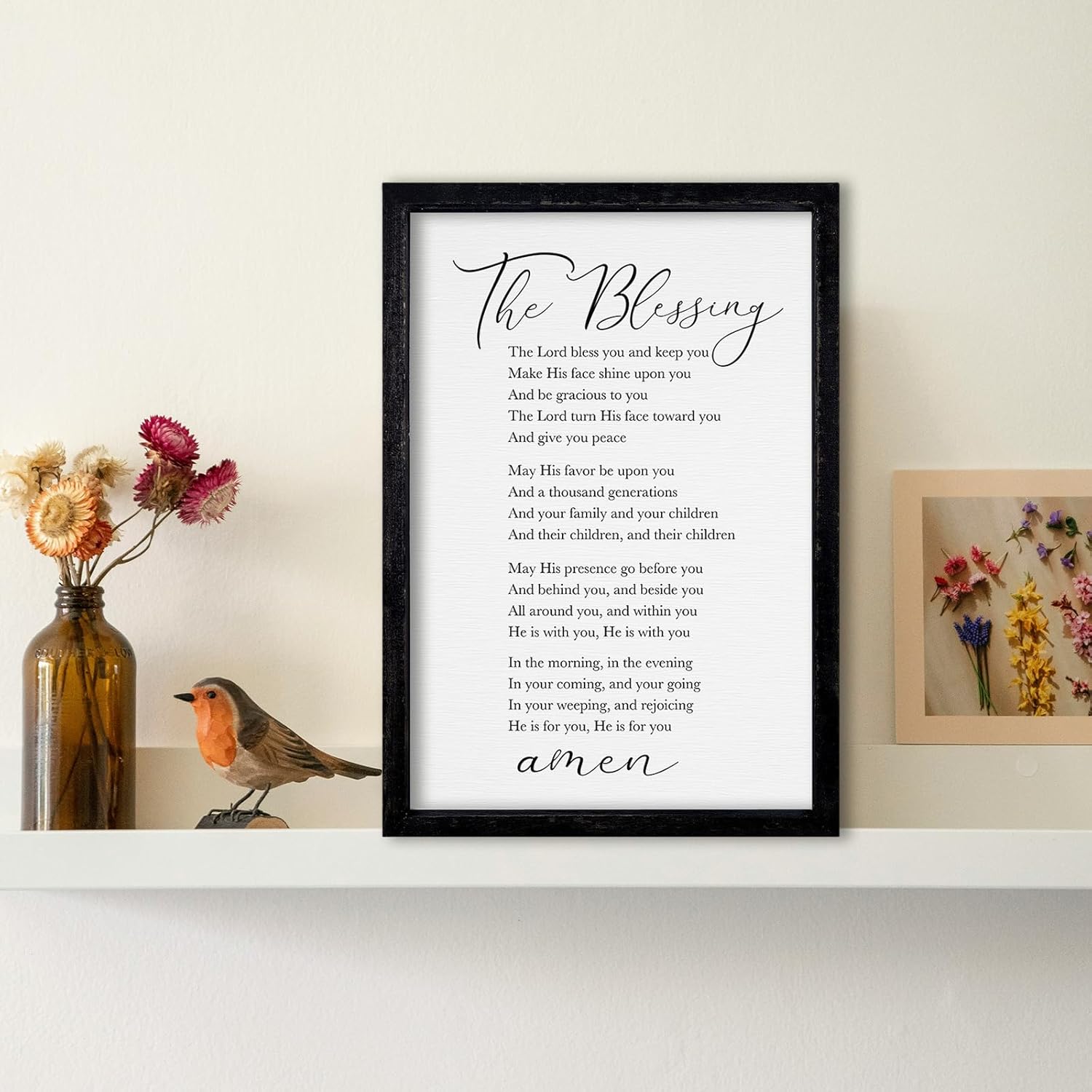 comurdyo The Blessing Bible Verse Wall Art Christian Decor for Home 16"×11" May The Lord Bless You And Keep You Scripture Sign Religious Bible Quotes Wall Decoration Wood Framed Hanging (Black)