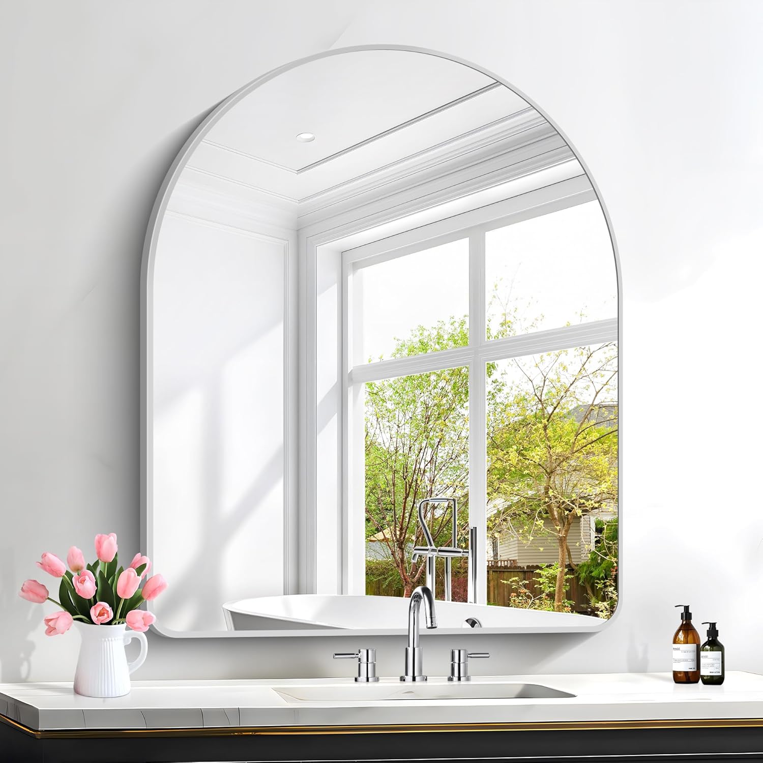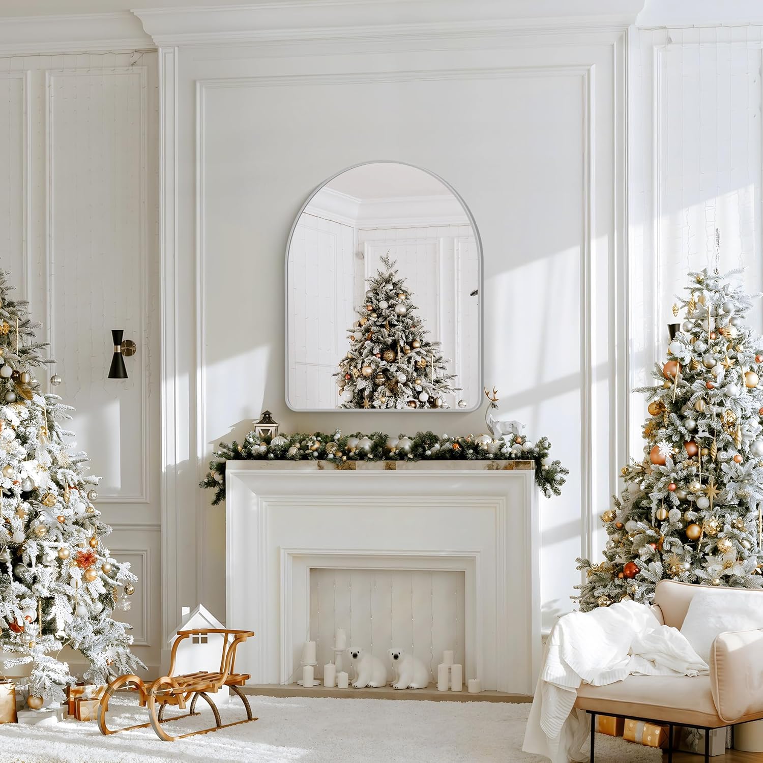 FORBATH Arched Bathroom Mirror 30x36 Inch, Arch Wall Mirror with Silver Aluminum Frame, Arched Mirror for Dresser, Fireplace,Entryway,Home Decor,Hanging or Leaning Against Wall