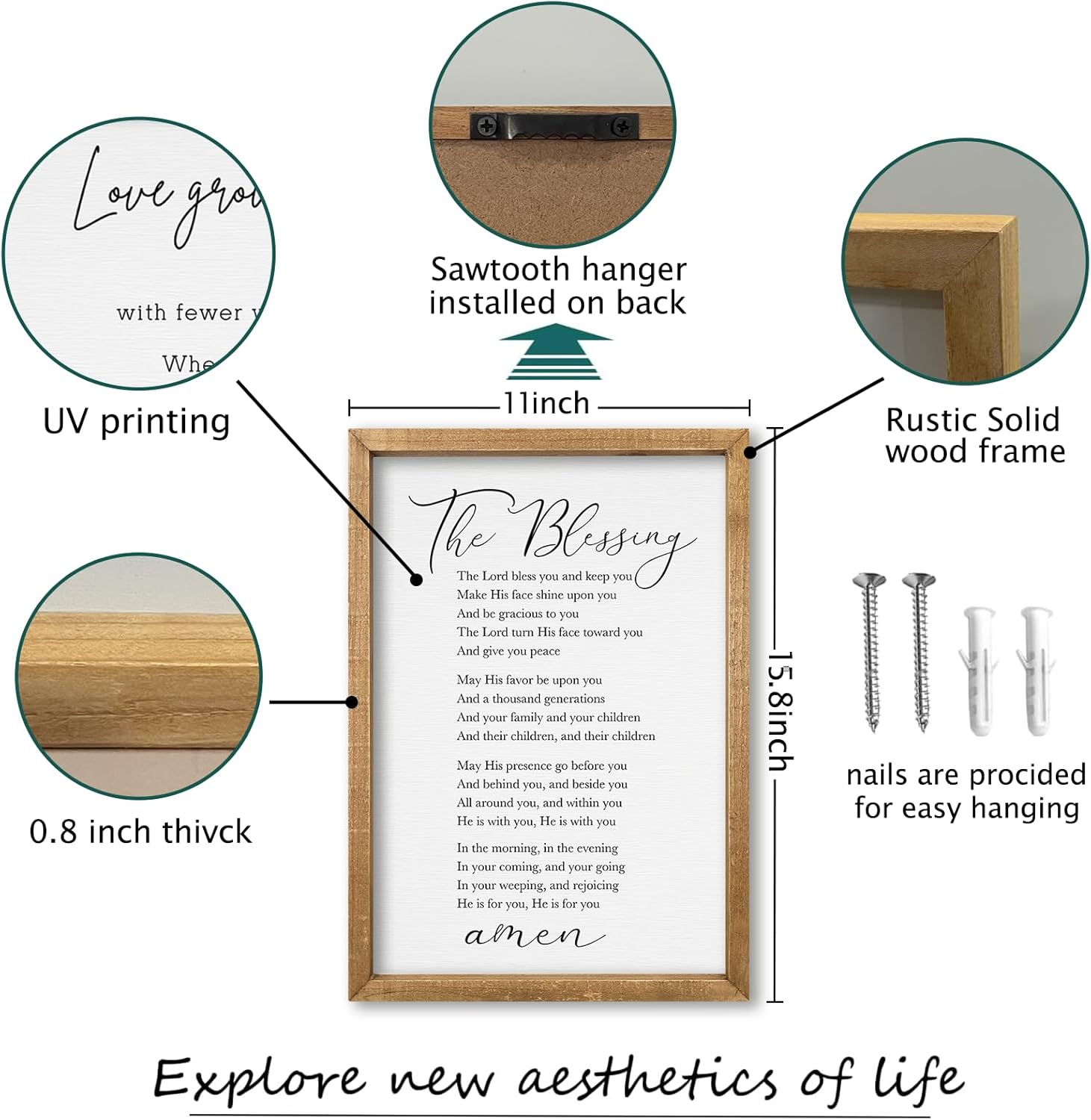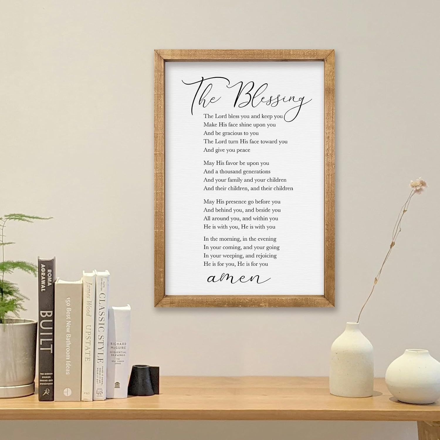comurdyo The Blessing Bible Verse Wall Art Christian Decor for Home 16"×11" May The Lord Bless You And Keep You Scripture Sign Religious Bible Quotes Wall Decoration Wood Framed Hanging (Wood)